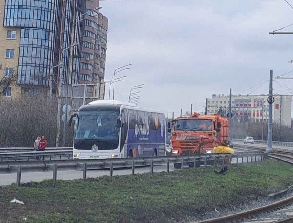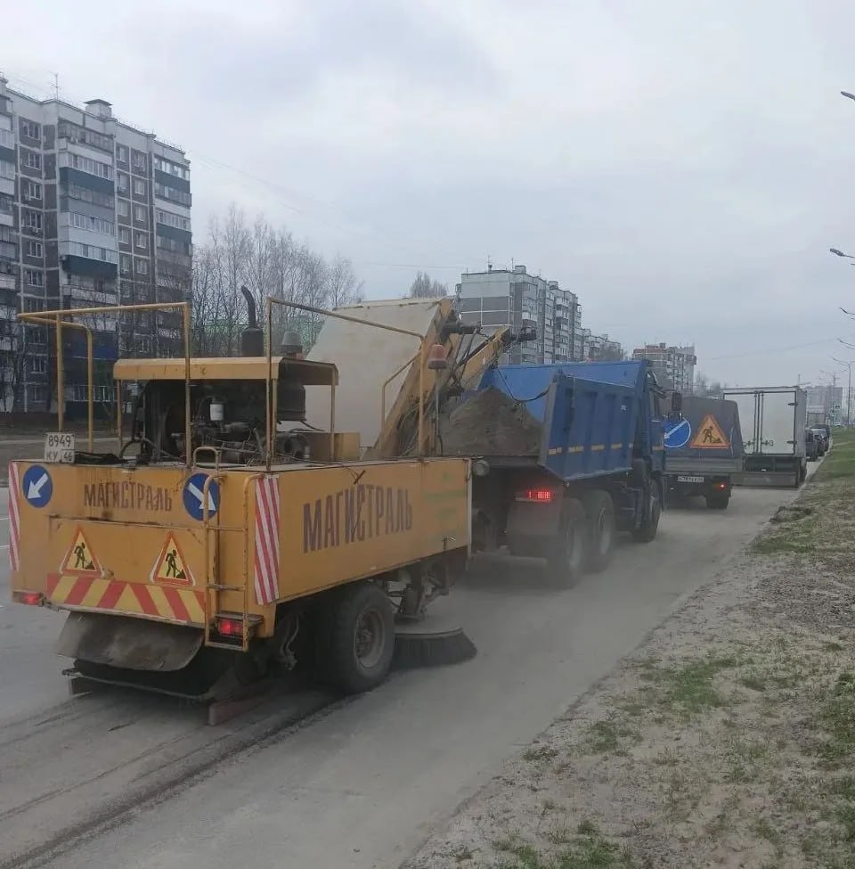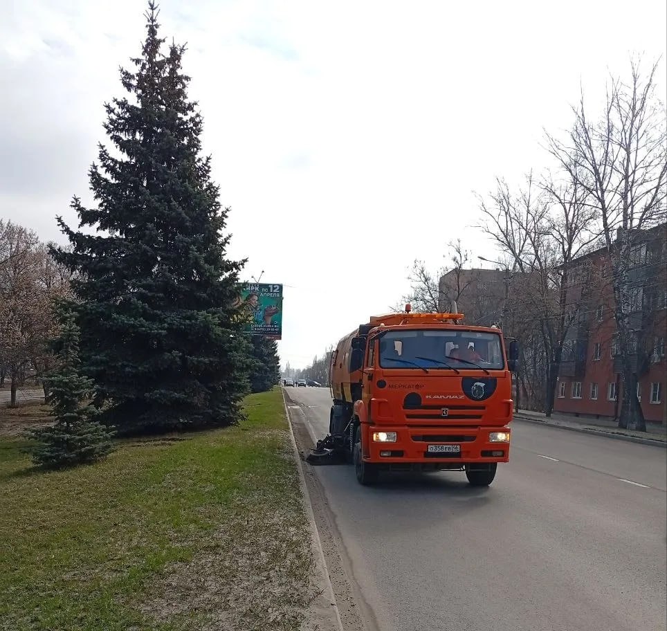 По информации комитета ЖКХ, подрядчики очищают проезжую часть от песка, пыли и грязи и моют асфальт. В работе задействовано 75 специалистов и 58 единиц техники.