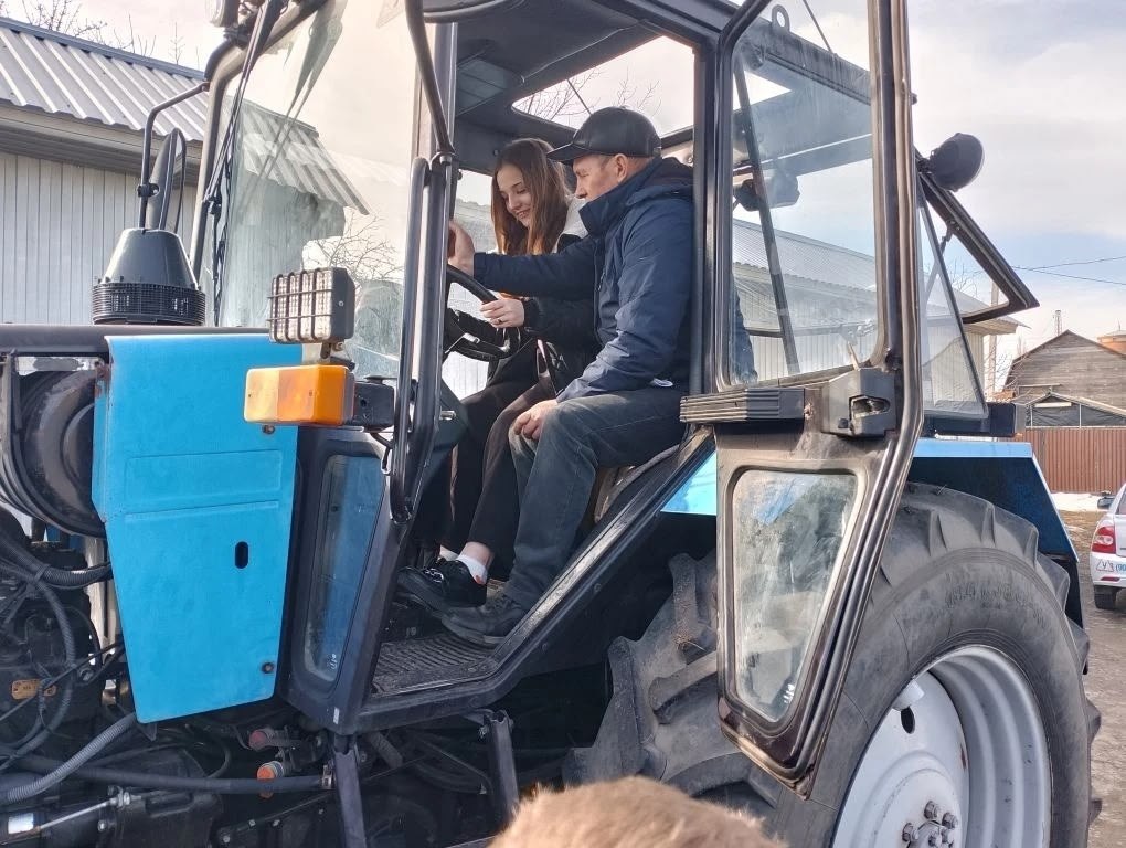 Школьники с интересом знакомились с трактором и его комплектующими. Мастер производственного обучения Виталий Николаевич Чернов показал ребятам как проводится ЕТО трактора. Настоящий ажиотаж вызвала возможность самостоятельно завести трактор.