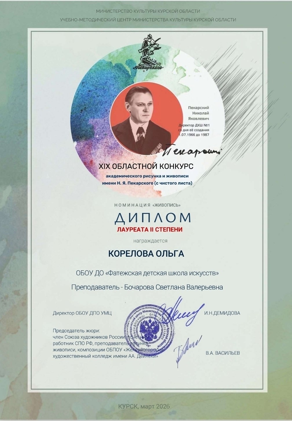 В номинации живопись из 87 участников Корелова Ольга стала Лауреатом II степени.