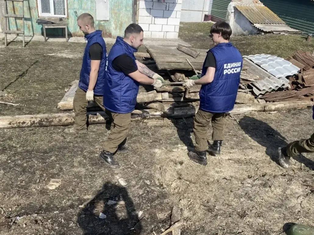Волонтеры лагеря Единой России «Курский рубеж» приступили к разбору завалов на участке Валентины Кашиной в Рыльске.