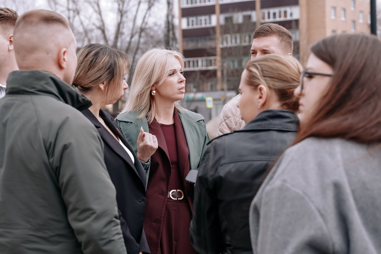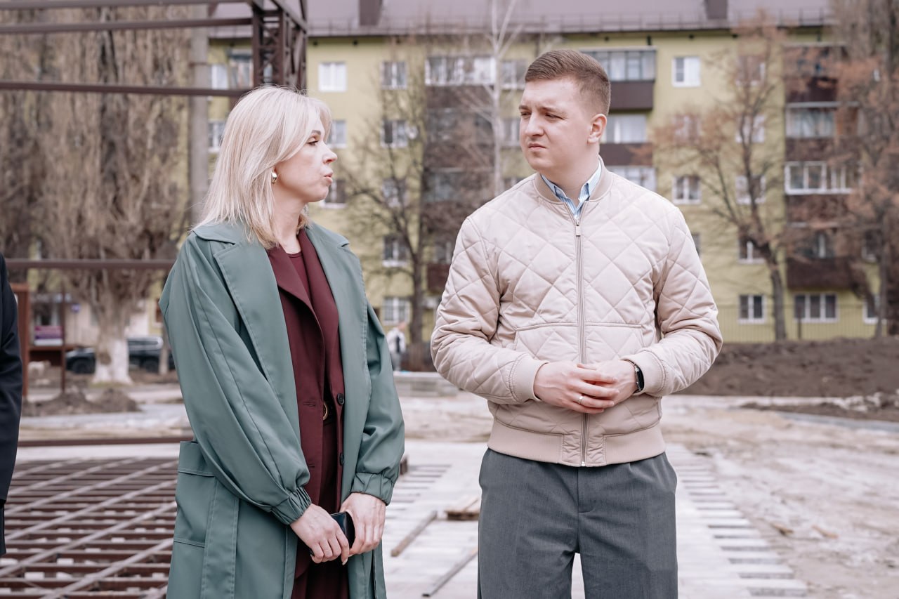 Председатель комитета молодежной политики Курской области Максим Щедрин вместе с директором областного Дворца молодежи Олесей Лазукиной, представителем «Движения первых» Кариной Птицыной и своим подшефным в рамках проекта «Курск. Герои!» Андреем Милютиным проверил работы по благоустройству территории около Дворца молодежи, где в скором времени появится парк.