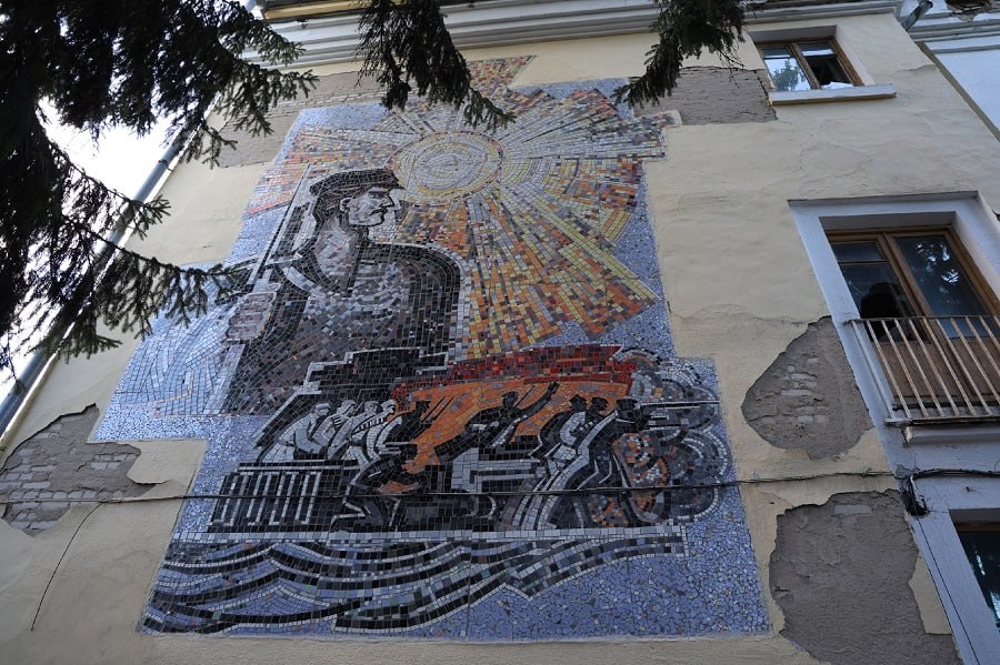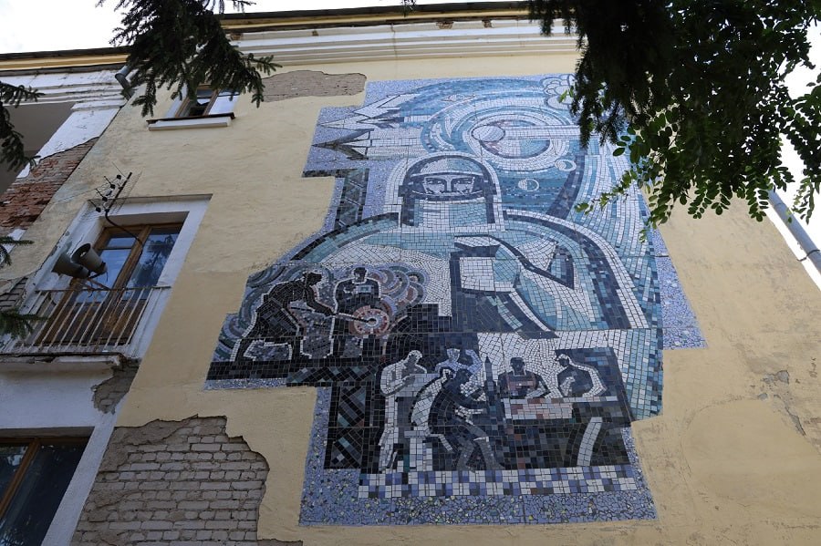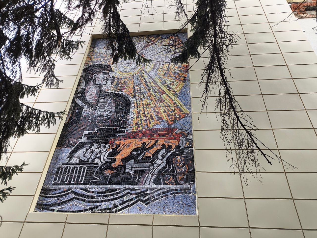 В Курске при ремонте здания обрезали советскую мозаику