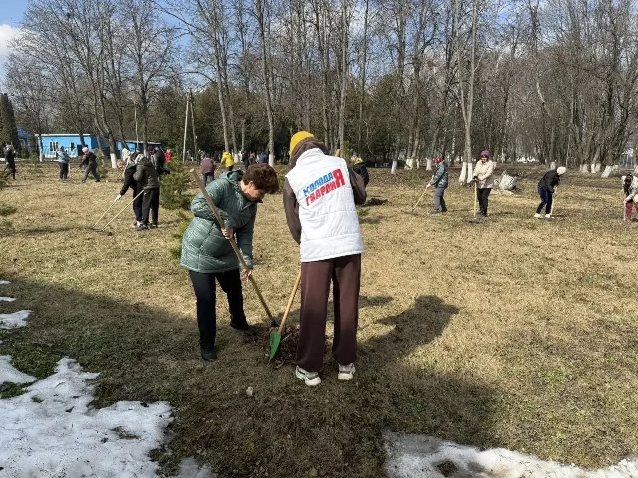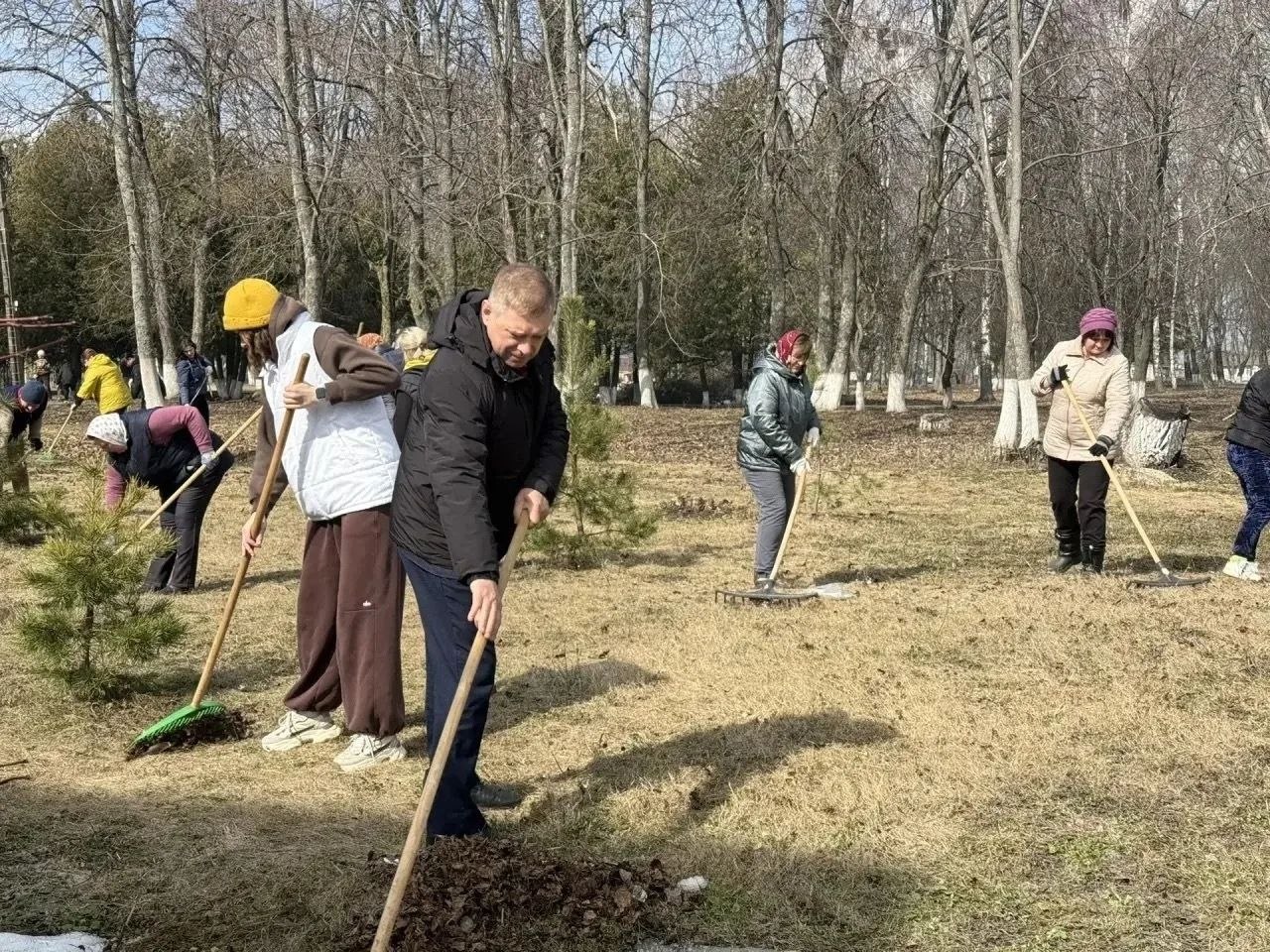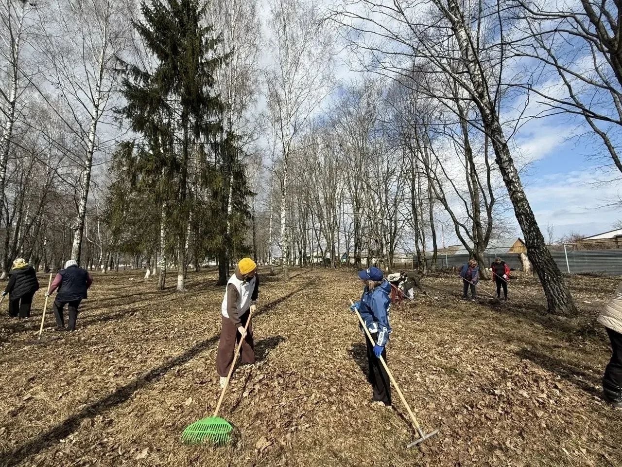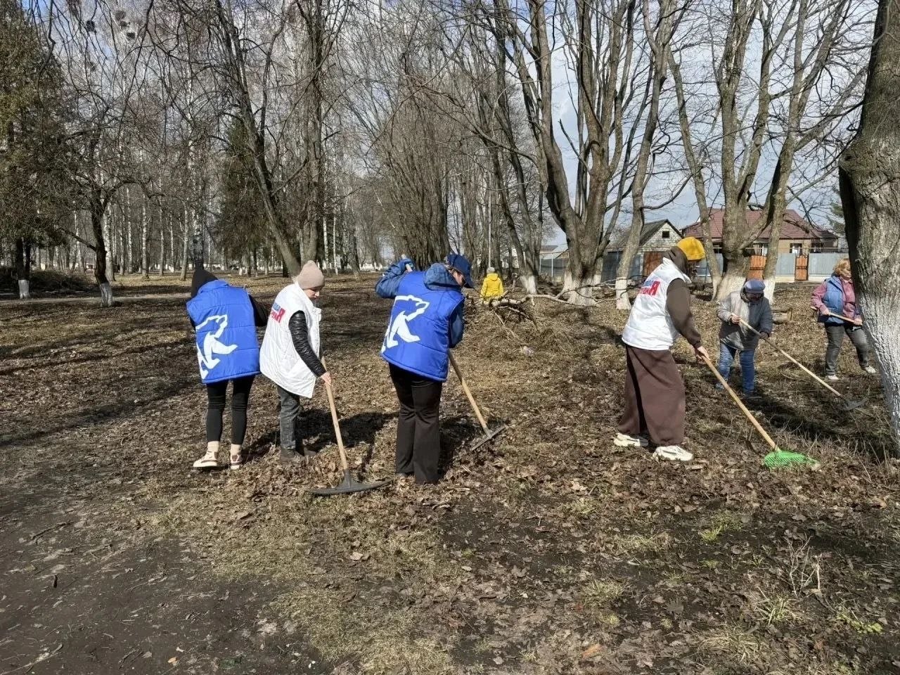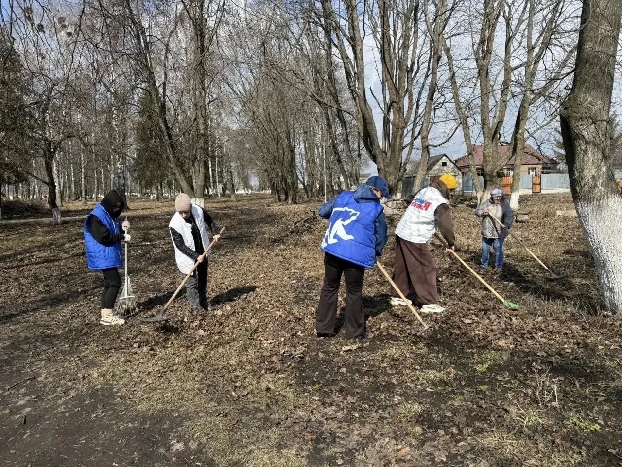 В Понырях участники субботника убрали парк «Героев Курской битвы» от сухой листвы, веток и мусора.
