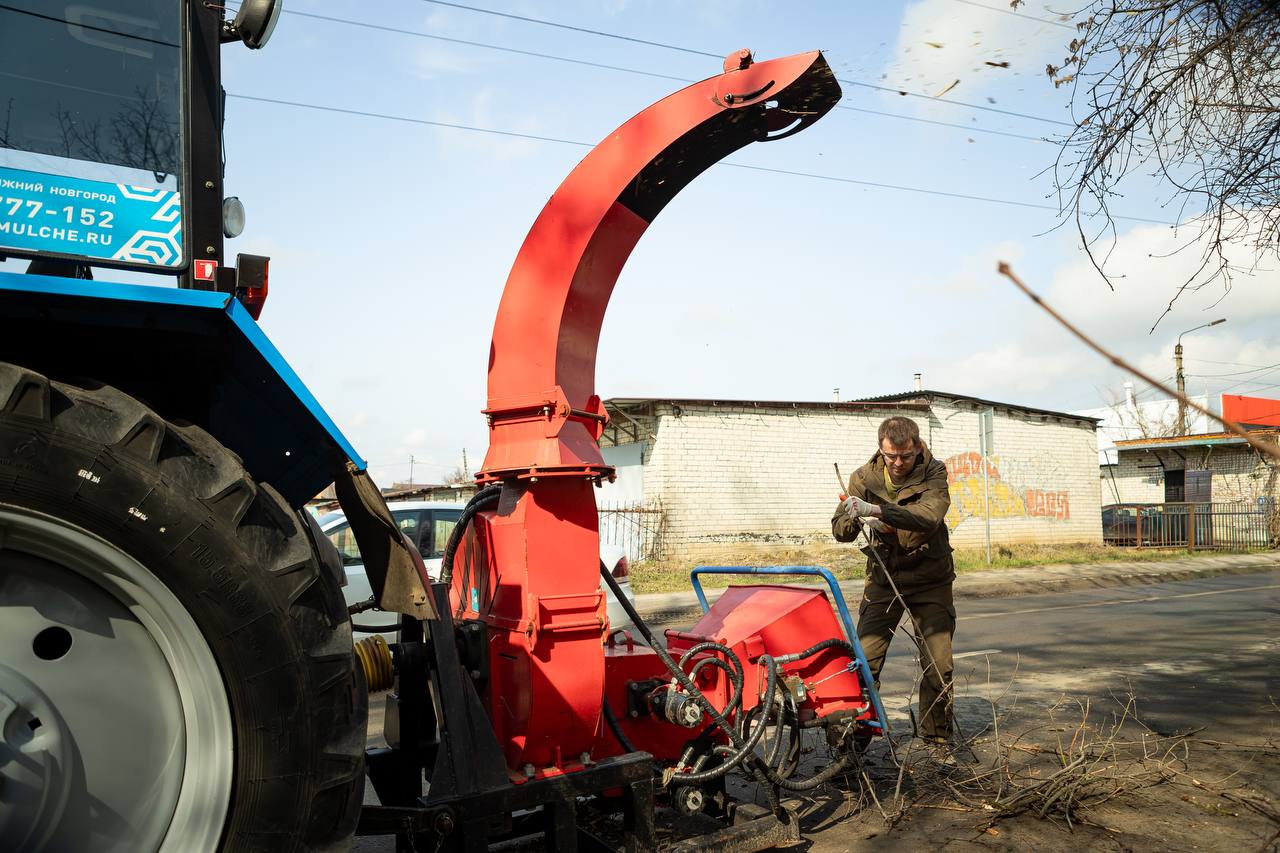 В работе помог мульчер — техника, которая быстро измельчает сухие деревья и ветки, делая территорию аккуратнее и безопаснее.