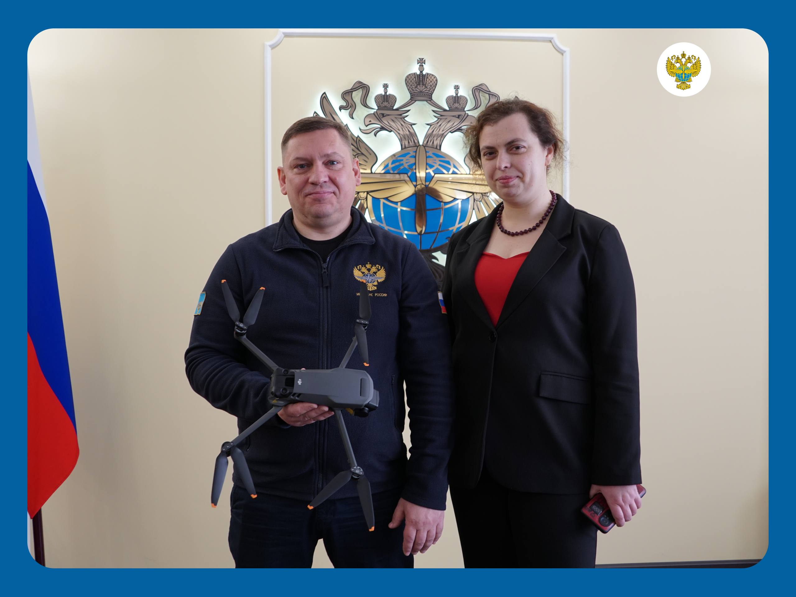 Заместитель руководителя Росавиации Сергей Страмоус от коллектива агентства передал бойцам СВО квадрокоптер Mavic 3 Pro и необходимые комплектующие.