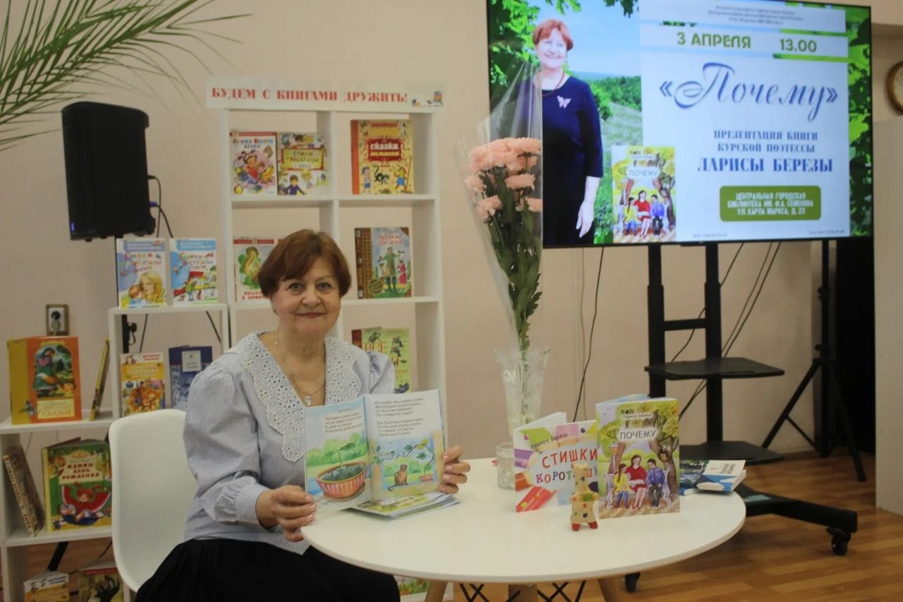 В рамках всероссийской Недели детской книги в Центральной городской библиотеке им. Ф.А. Семенова при поддержке комитета культуры и туризма города Курска состоялась презентация книги Ларисы Львовны Березы «Почему».