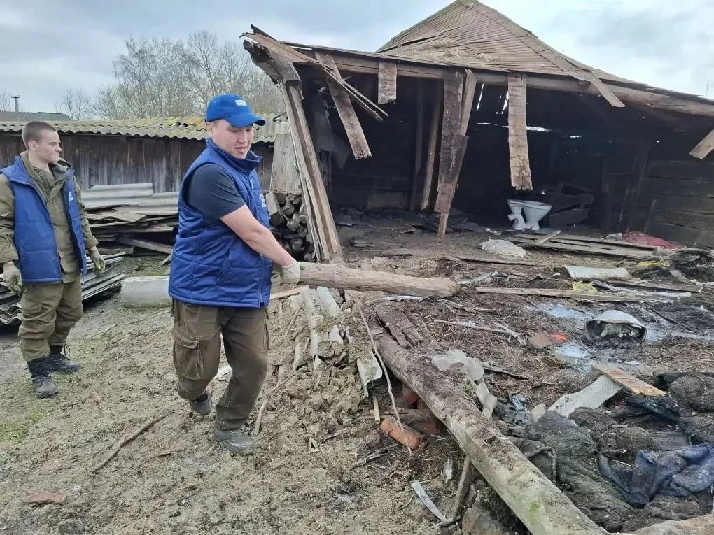 Участники (всего их 40, они из 10 регионов России) оказывают помощь жителям приграничья, чьё имущество было повреждено в результате украинских атак.