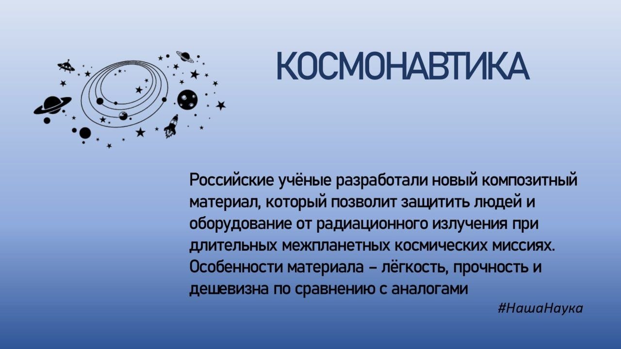 Уже сейчас результаты показывают, что эффективно защищать людей и технику от радиации сможет даже тонкий слой материала. А ещё хорошая обрабатываемость композита инструментальными методами позволит делать из него сложные детали космических конструкций.