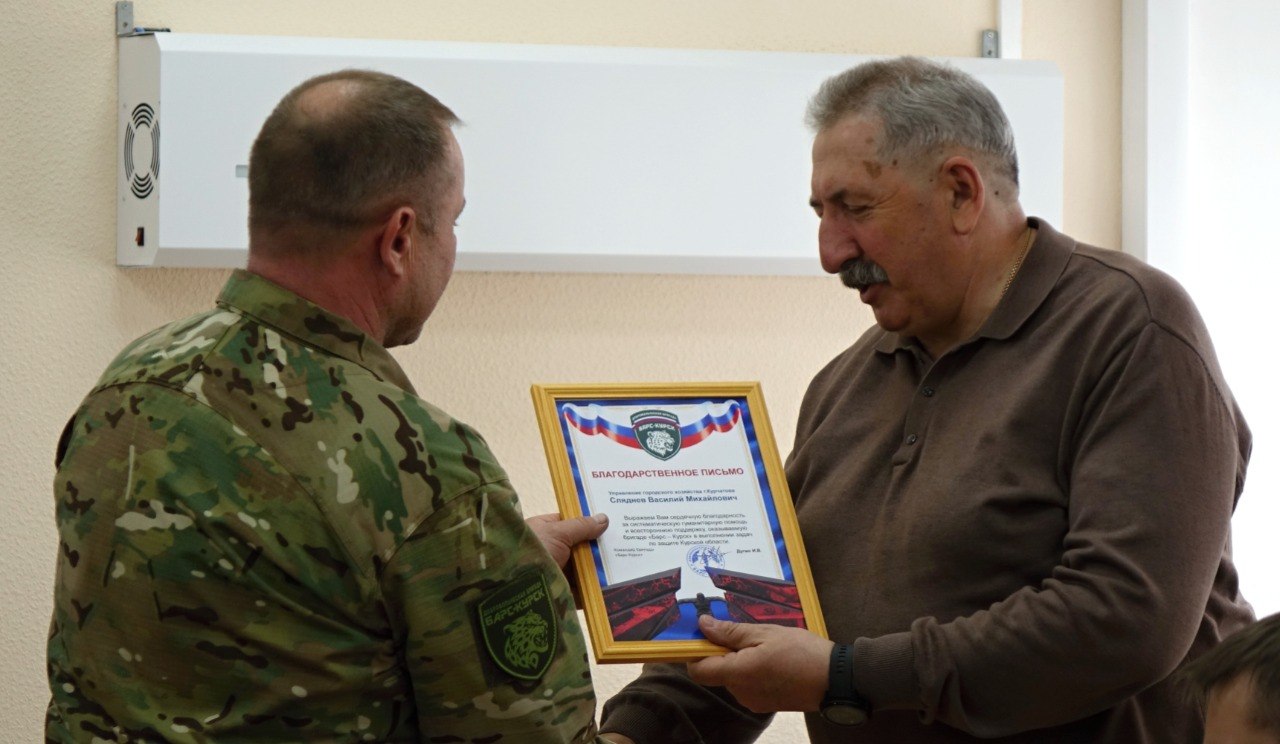 В свою очередь, бойцы вручили Благодарственные письма за подписью своего командира администрации города и директору Управления городского хозяйства Слядневу В.М. за систематическую гуманитарную помощь и всестороннюю поддержку наших защитников.