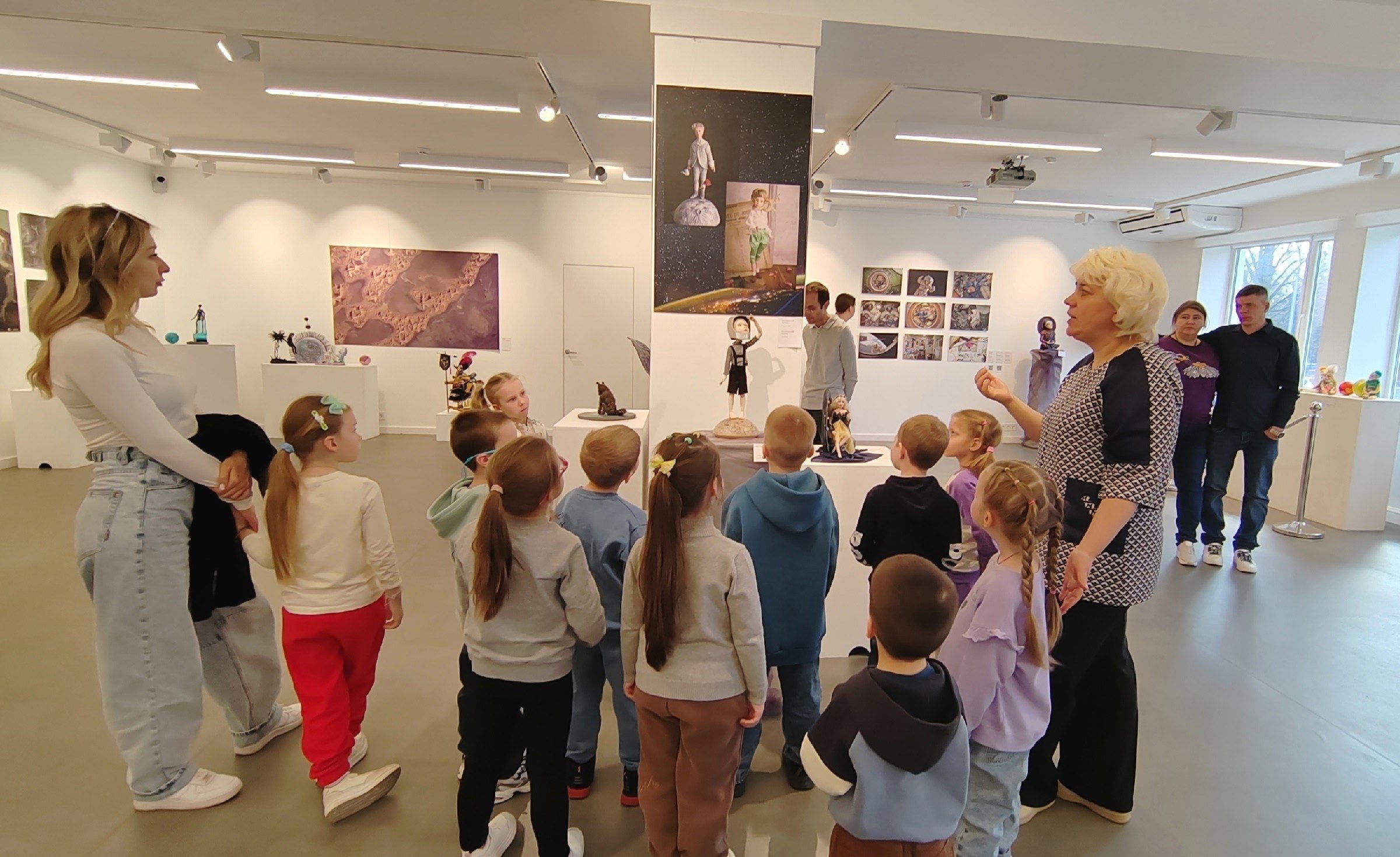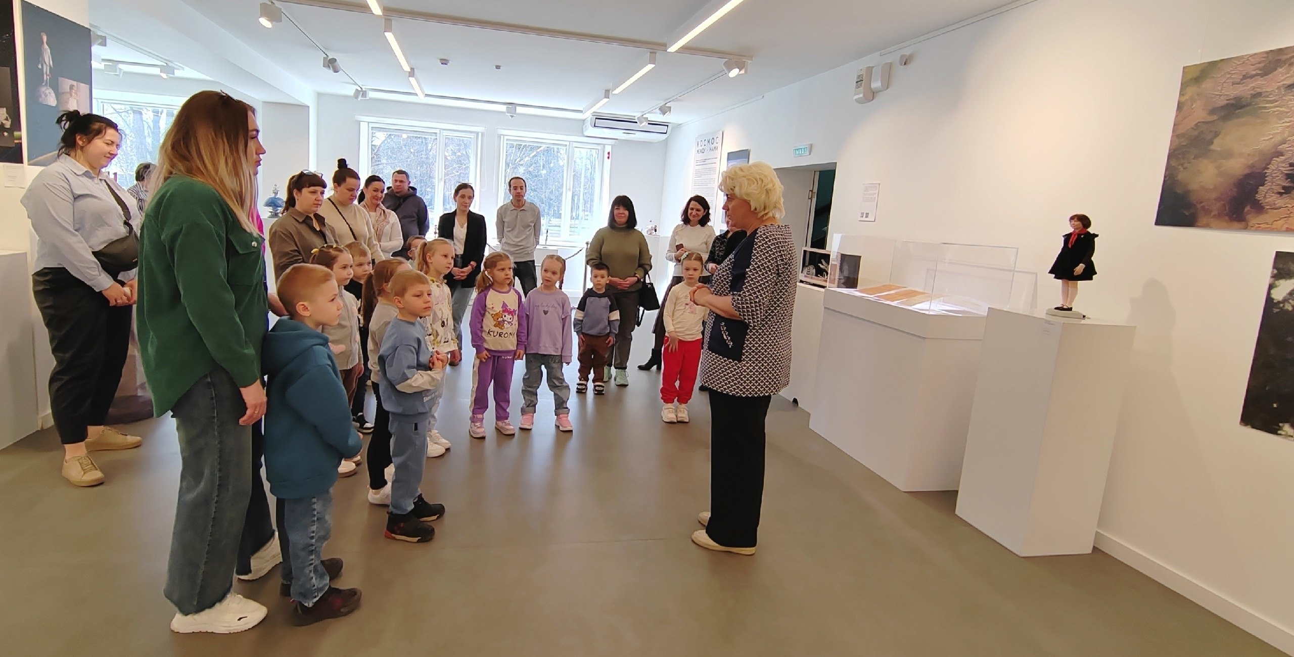 На фото: воспитанники детского сада "Капитошка" вместе с родителями на экскурсии по выставке "Космос между нами".