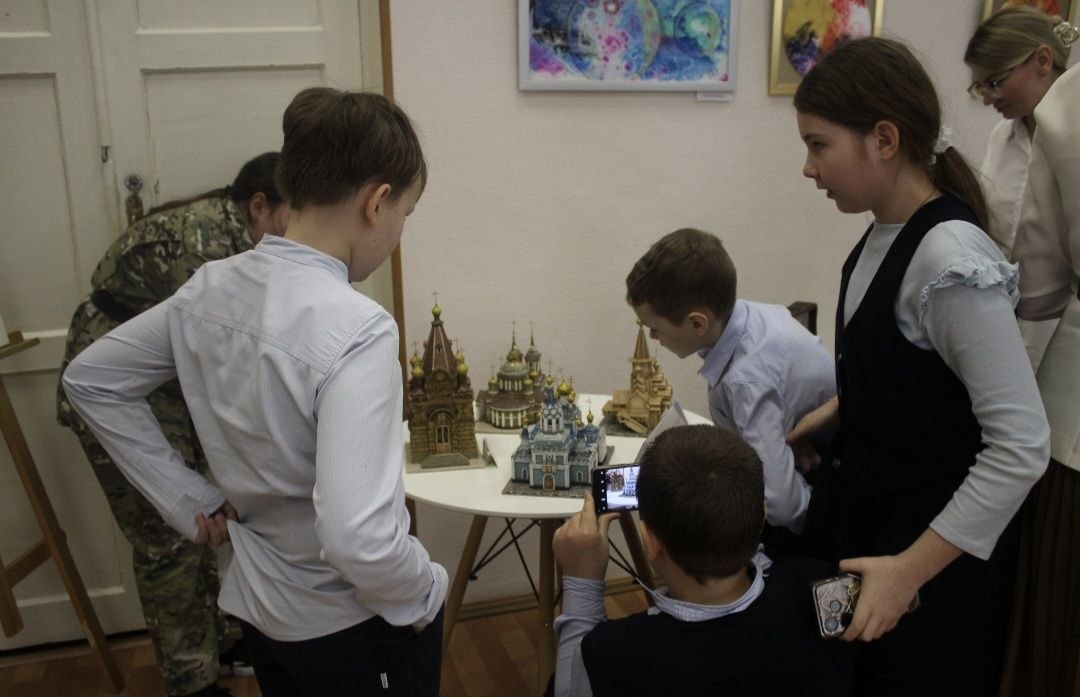Увлекательное общение дополнила выставка макетов храмов русского деревянного и каменного зодчества «Собор церковного искусства». На ней представлены как ныне существующие, так и утраченные памятники зодчества работы народного умельца, курянина Юрия Шевлякова.