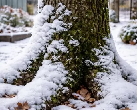 Можно услышать мнения о возможном повреждении коры у основания ствола. Однако рыхлый снег не несёт угрозы. Проблемы начинаются не от снега, а от недостатка воздухообмена. Рыхлый снег «дышит», постепенно тает и обеспечивает плавный переход от зимы к весне. В таком состоянии деревья чувствуют себя комфортно.