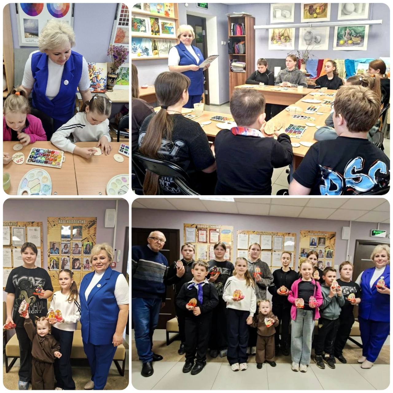 Ребята с увлечением расписывали пасхальные яйца и украшали куличи. В зале звучал детский смех и царила атмосфера настоящего весеннего праздника.