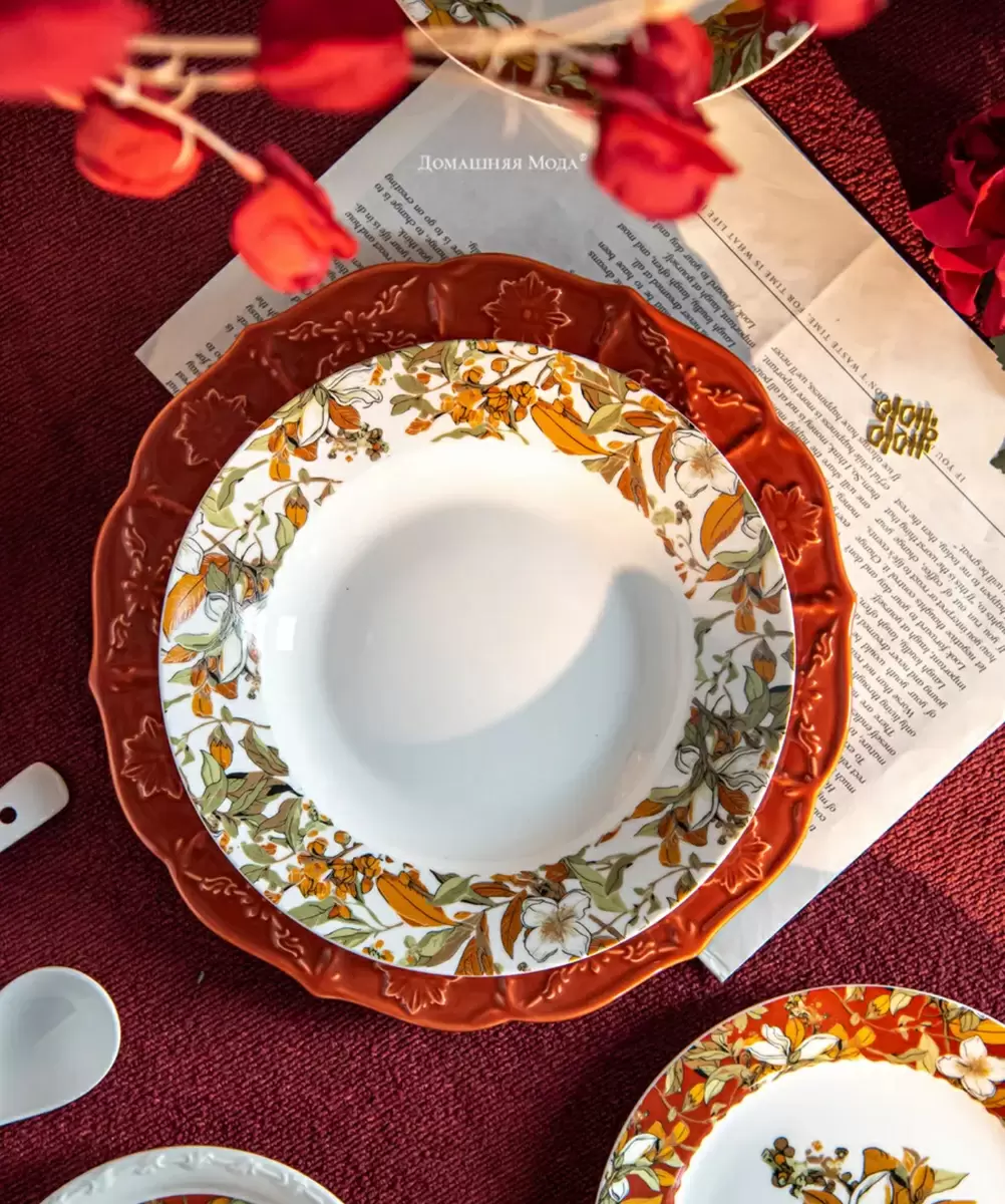 Первым в списке идет набор осенних тарелок, который станет настоящим украшением любого стола. Яркие цвета и яркие детали, такие как листья на краях, привносят в атмосферу домашнего уюта и стильности. Такая тарелка диаметром 22 см идеально подойдет для подачи ваших любимых блюд, а можно собрать целую коллекцию различных форм и оттенков.