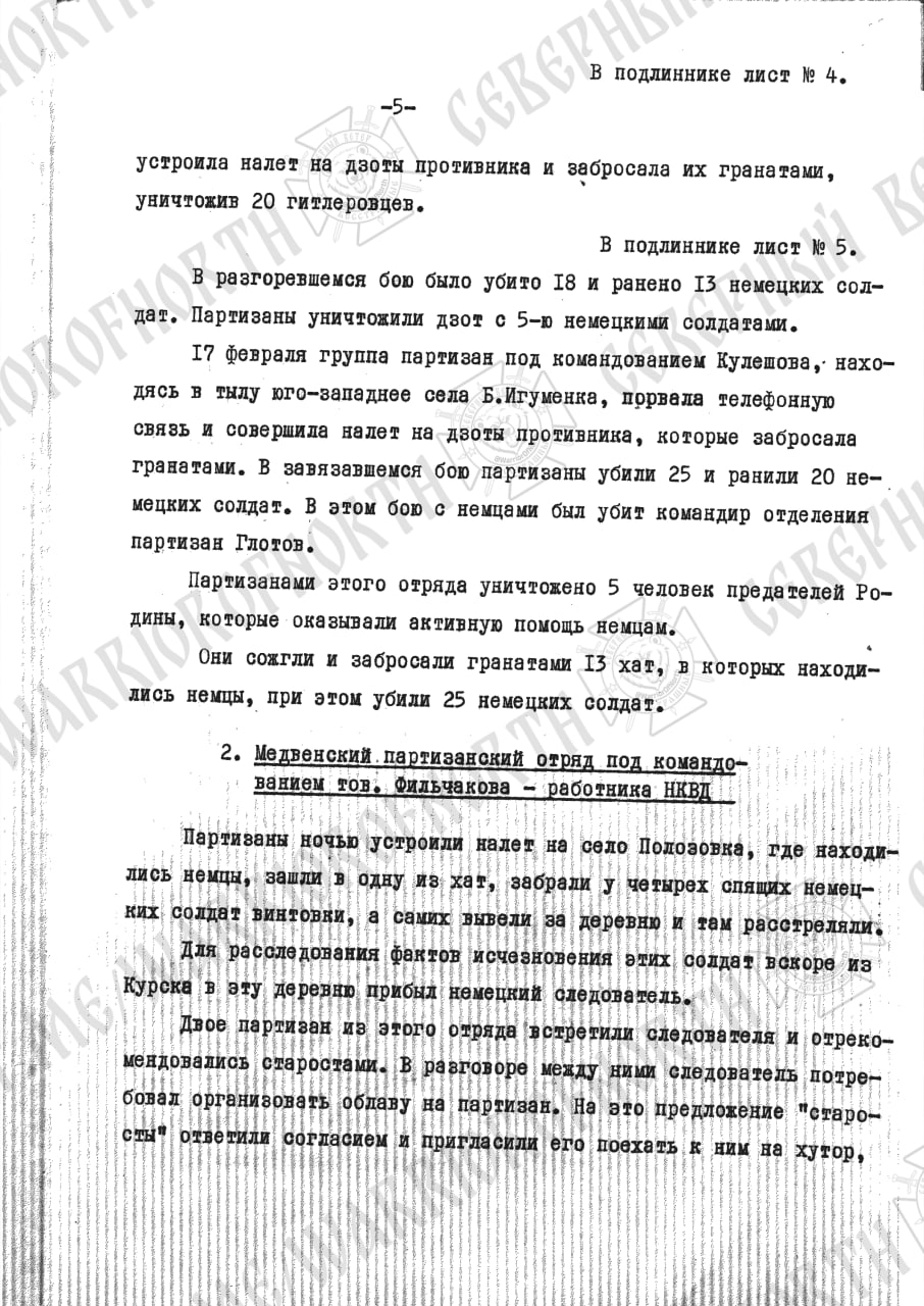 Сегодня вновь представлены документы о партизанских отрядах, действующих на оккупированных немцами территориях Курской области.