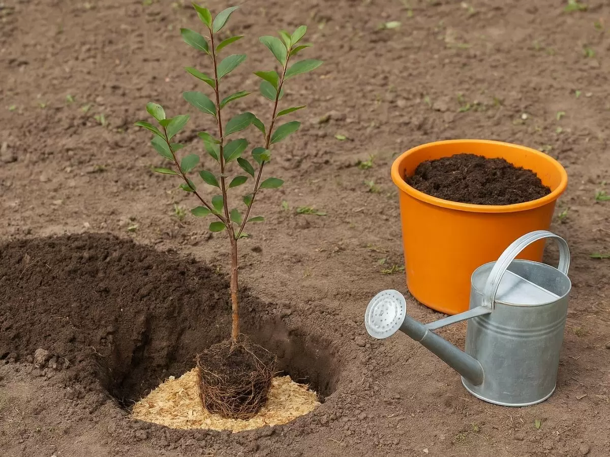 Формирование посадочной ямы — ключевой момент, который определяет, насколько быстро саженец приживется. Яму выкапывают размером примерно 50 см в глубину и ширину, при этом верхний плодородный слой рекомендуется складывать отдельно. Этот слой стоит перемешать с перегноем и минеральными удобрениями, что обеспечит растению все необходимые элементы для роста.