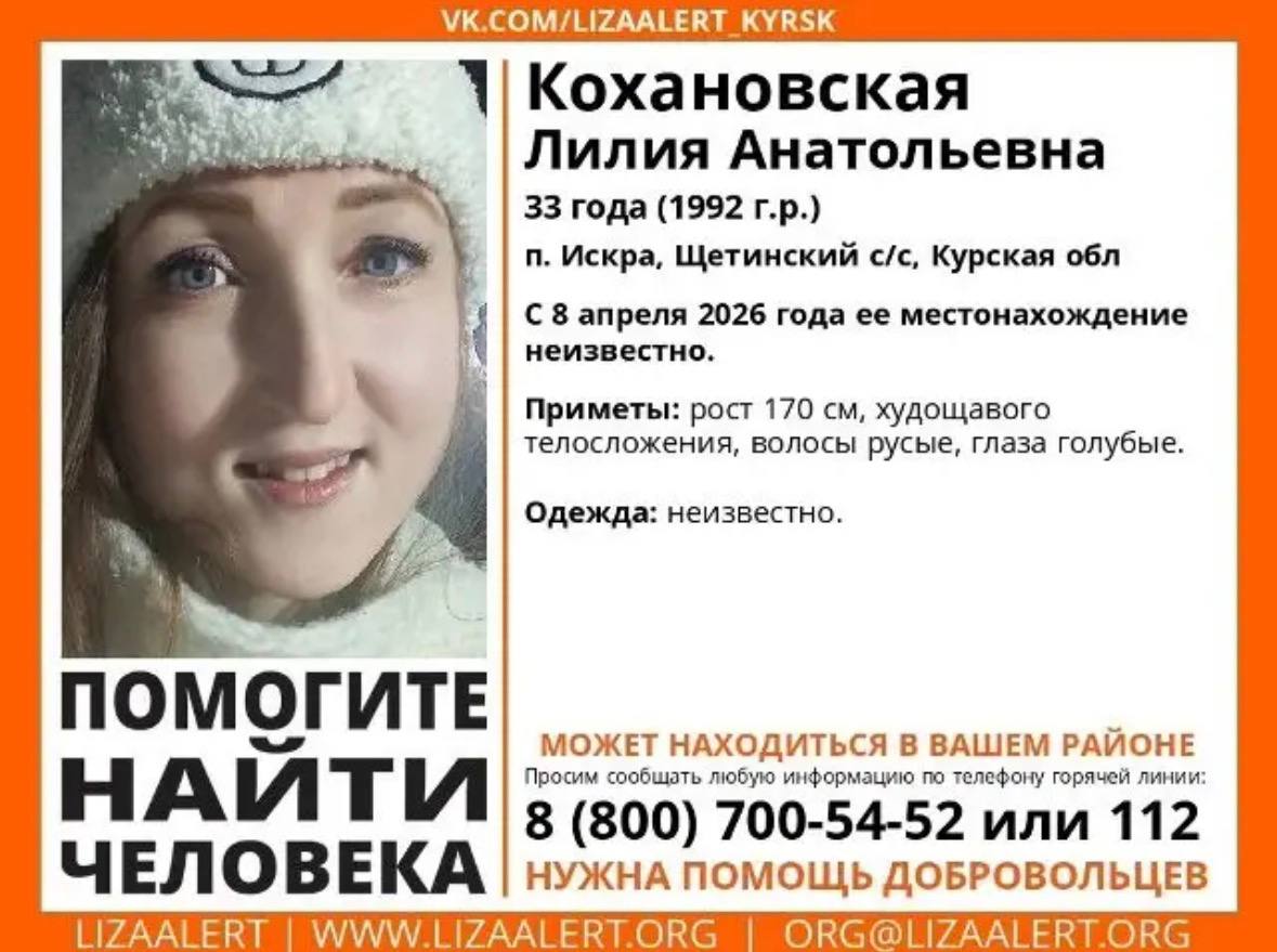 В Курской области объявлен поиск Кохановской Лилии Анатольевны. 33-летняя женщина проживает в посёлке Искра Щетинского сельсовета.
