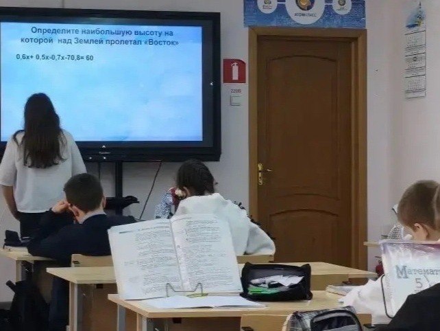 Решая уравнения ребята определили наибольшую высоту на которой пролетал корабль-спутник «Восток». С особым интересом рассчитывали свой вес при путешествии на Луну. На уроке ребята узнали малоизвестные факты о полете и жизни Ю.А. Гагарина. Урок подарил нашим ученикам положительные эмоции, а самое главное- новые знания!
