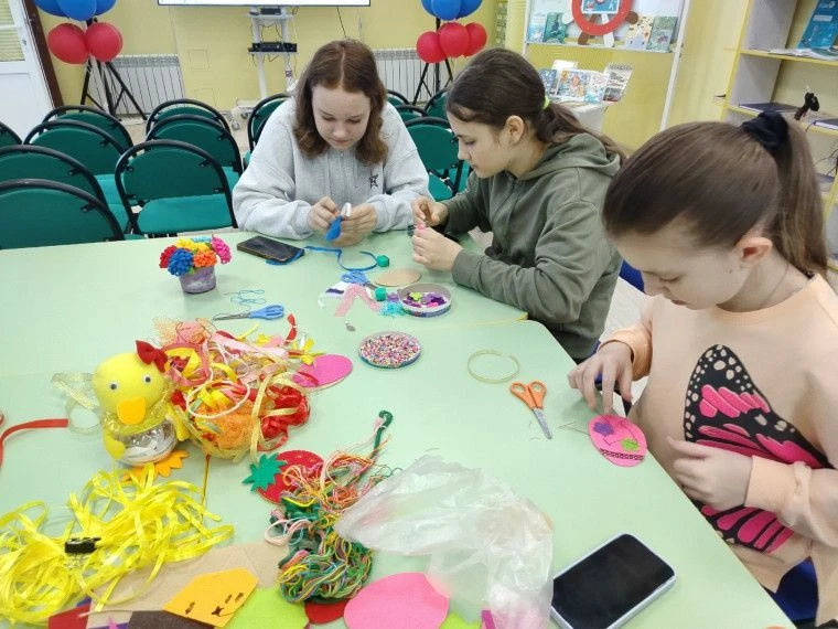 11 апреля в клубе семейного рукоделия «Семицветик» Центральной детской библиотеки прошёл час творчества «Пасхальной радости сиянье». Ребята сшили очень яркие и красивые пасхальные сувениры из фетра в виде яиц. Украсили их бисером, атласными лентами, цветами.