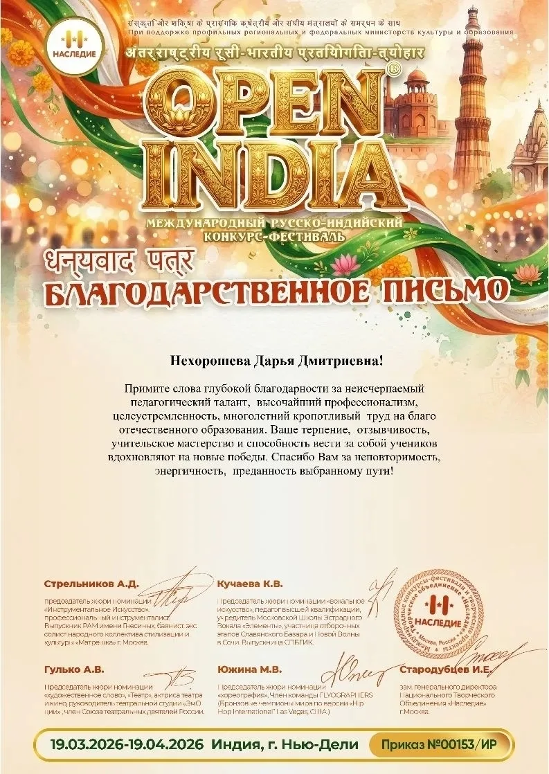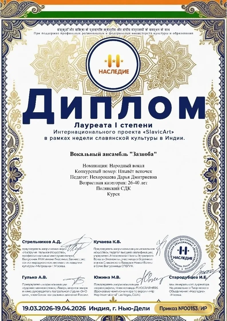 В интернациональном проекте «SlavicArt» в рамках Недели славянской культуры в Индии «Зазноба» также стала лауреатом I степени.