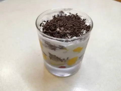 Для крема объедините мягкий творог и подсластитель, а манго нарежьте мелкими кусочками. Измороженные ягоды малины можно заранее достать из морозильника. В высоком стакане выстраивайте десерт слоями: сначала бисквит, затем крем, за ним ягодки и кусочки манго. Этот процесс можно повторить, завершая слоем крема. Дайте десерту настояться в холодильнике около часа. При желании, десерт можно украсить тертым шоколадом.