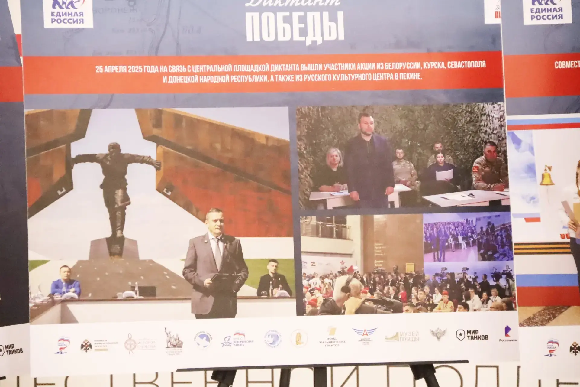 Она размещена в главном зале Штаба общественной поддержки и посвящена Международному историческому диктанту на тему событий Великой Отечественной войны.