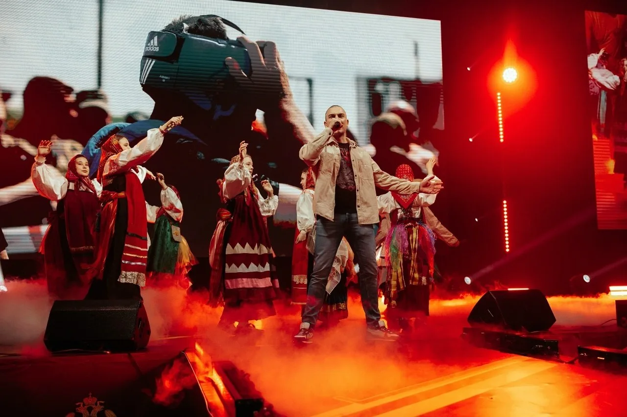 Зажигательный трек «Русские идут» от рэп-исполнителя «MK 5.45», представленный в коллаборации с фольклорными коллективами, произвел настоящий фурор на мероприятии, став его ярчайшим моментом.