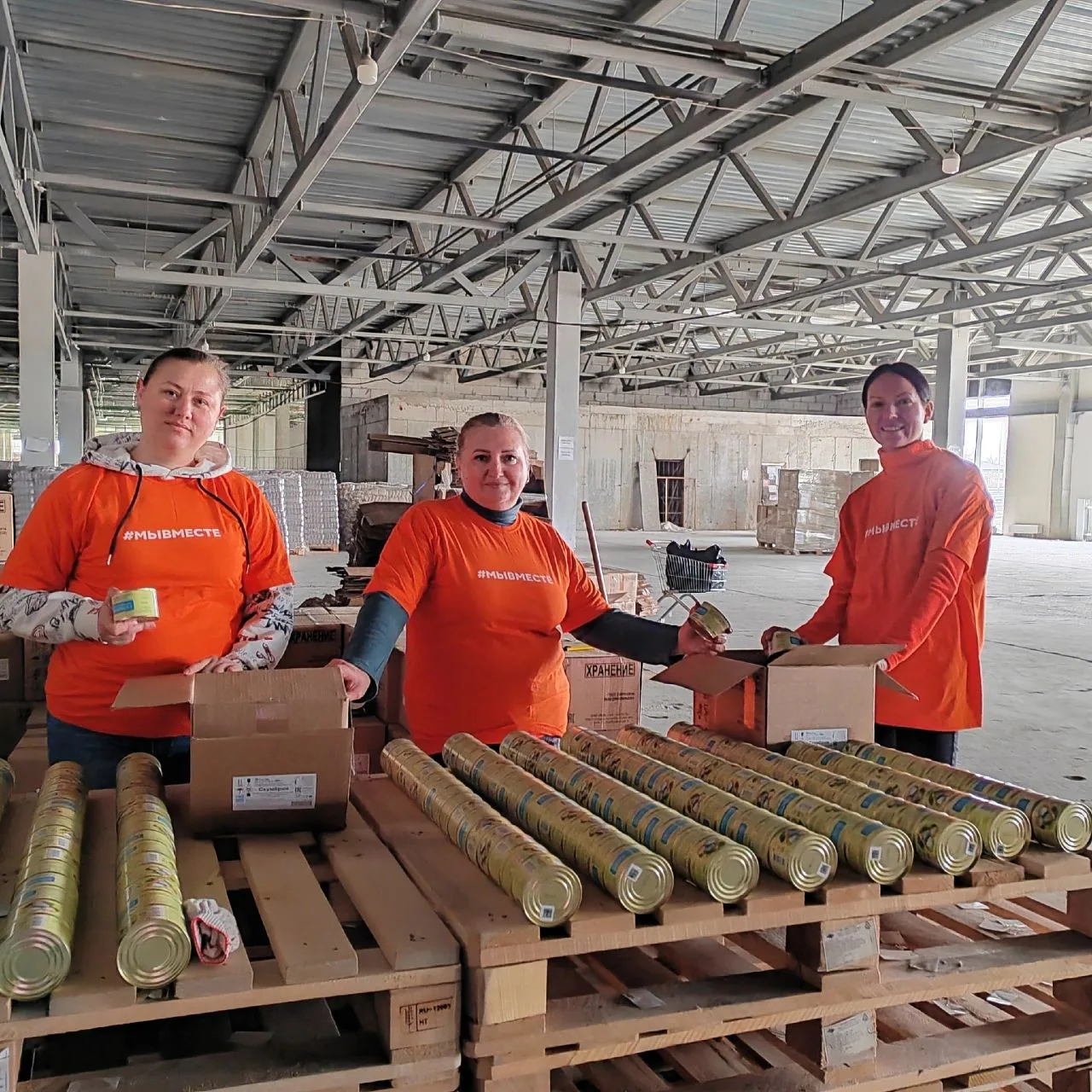 Активисты-добровольцы участвуют в формировании важного груза - сортируют, собирают продукты, помогают упаковывать и подготовить к отправке.