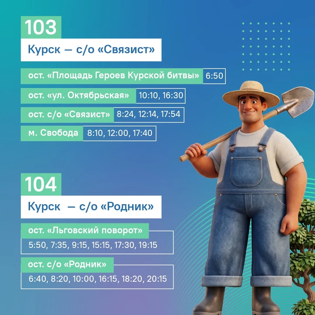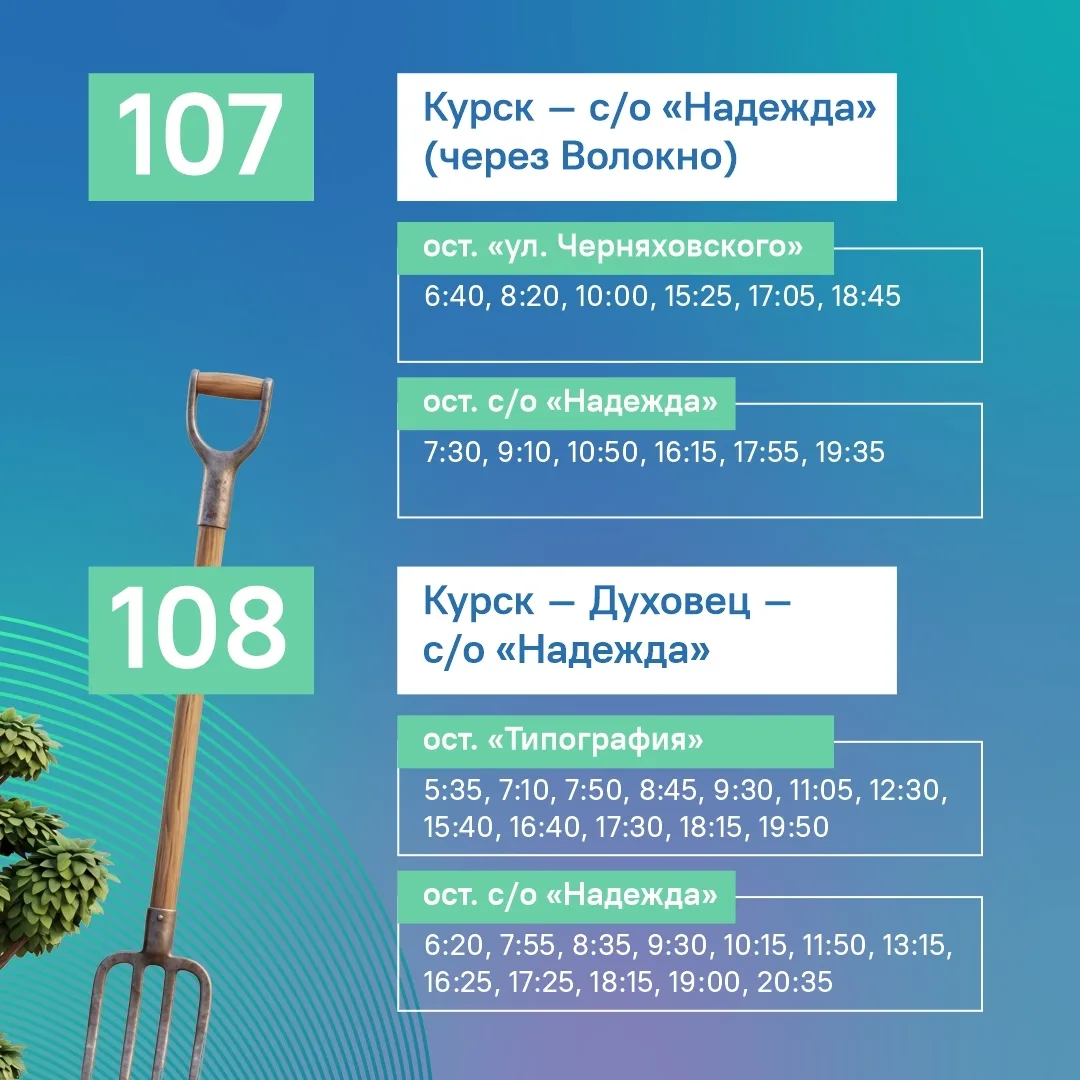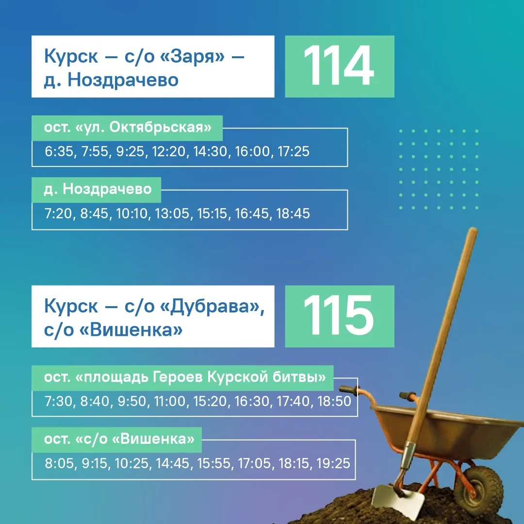 В регионе с 17 апреля стартуют пассажирские перевозки к садово-огородным участкам в Курском, Щигровском, Золотухинском, Октябрьском, Железногорском и Курчатовском районах. Автобусы будут курсировать 4 раза в неделю — в среду, пятницу, субботу и воскресенье, а также в праздничные дни. Уже определены маршруты. Сезон продлится до 17 октября.
