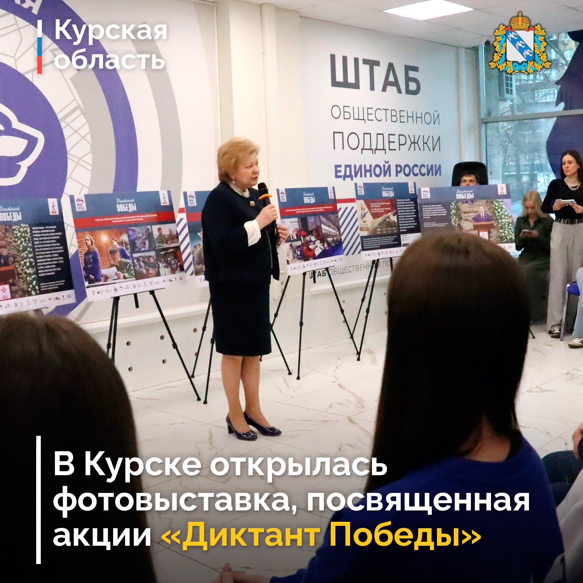 В Штабе общественной поддержки открылась фотовыставка, посвященная международному историческому диктанту на тему событий Великой Отечественной войны. Экспозиция является приглашением к написанию «Диктанта Победы», который в этом году состоится 24 апреля. Его будут писать представители всех поколений. На сегодняшний день в Курской области зарегистрировано 635 региональных площадок, тогда как прошлом году их было 575.