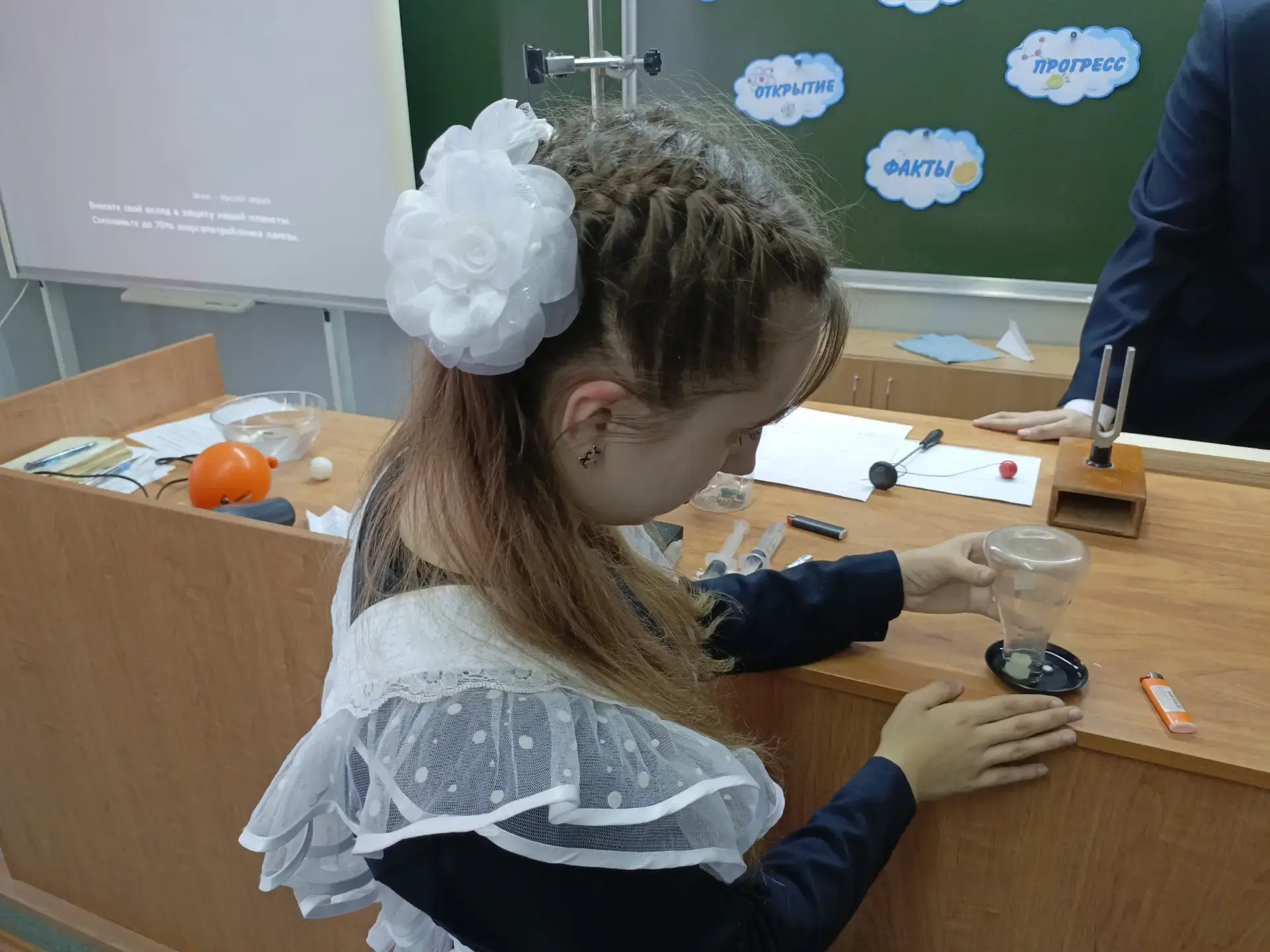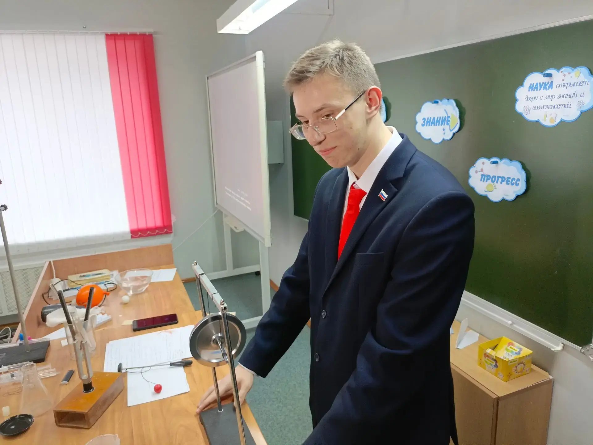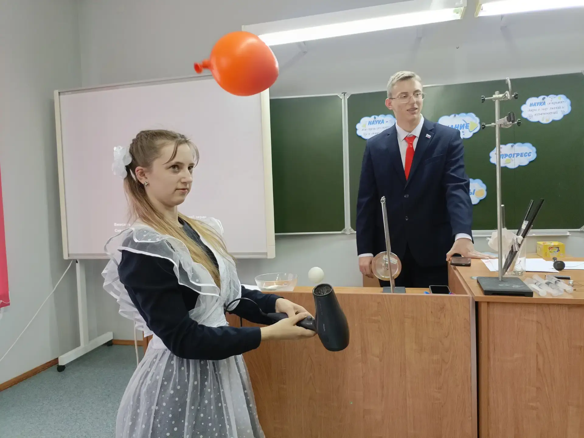 Для демонстрации экспериментов использовали оборудование, закупленное в рамках нацпроекта «Молодежь и дети». Одиннадцатиклассник Илья Бурцев показал опыты с поверхностным натяжением, трением и статическим электричеством.