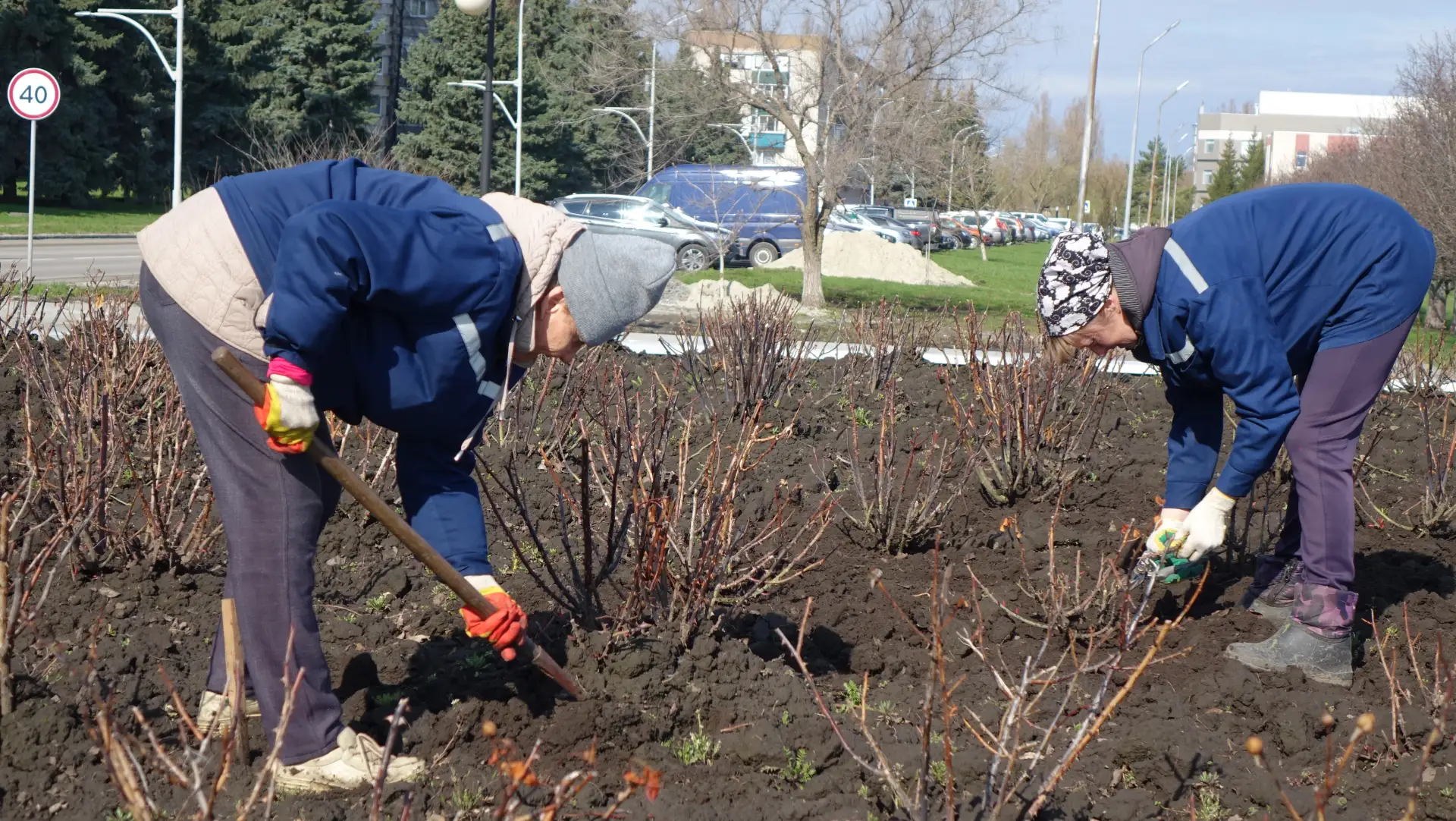 Солнечная погода способствует позитивному настрою. Работа спорится. Территория преображается на глазах.