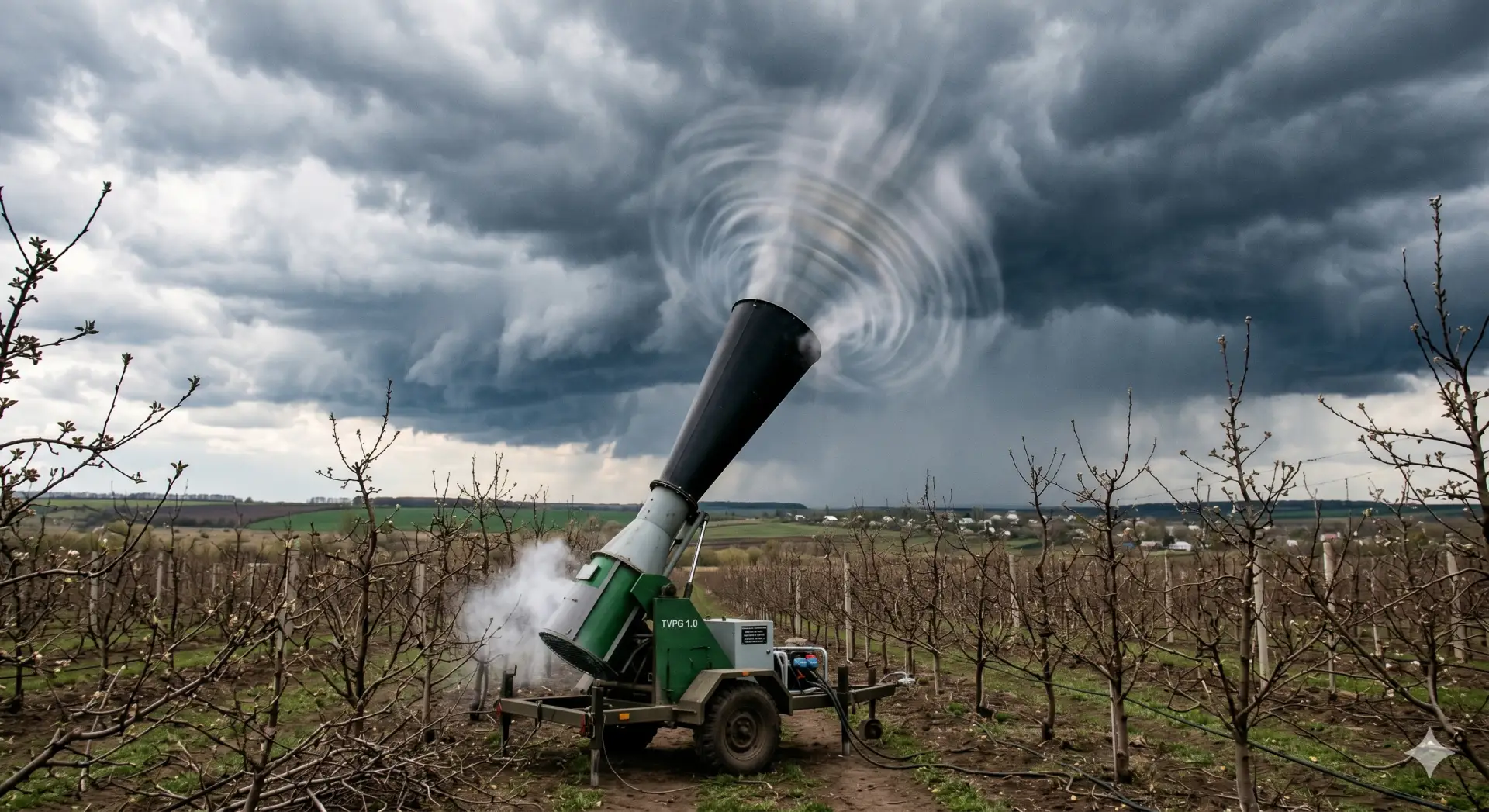 С 14 апреля в Зоринском саду начнут использовать противоградовую установку модели TVPG1.0. Устройство защитит территорию от опасных осадков с помощью выстрелов звуковыми волнами.
