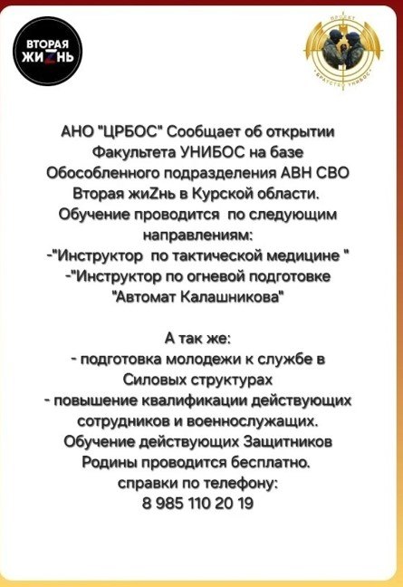 На базе обособленного подразделения АВН СВО «Вторая жиZнь» (рук. Мария Карпенко) открывается факультет для обучения молодежи по следующим направлениям: