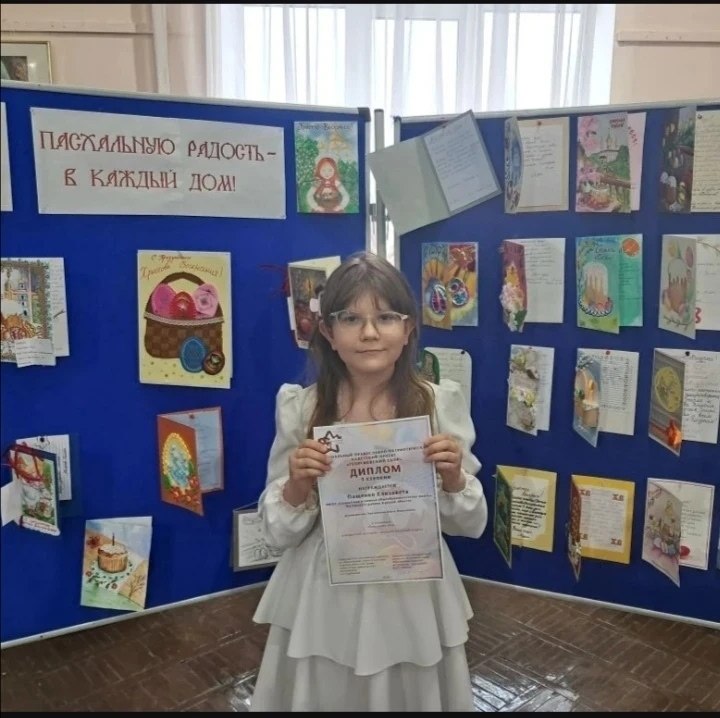 Пащенко Елизавета (4 класс) заняла 1 место в областном фестивале-конкурсе «Пасхальную радость – в каждый дом» в номинации «Пасхальное яйцо» и 13 апреля 2026 г. приняла участие в торжественном мероприятии (награждении) в МБУ ДО «Дворец пионеров и школьников города Курска».