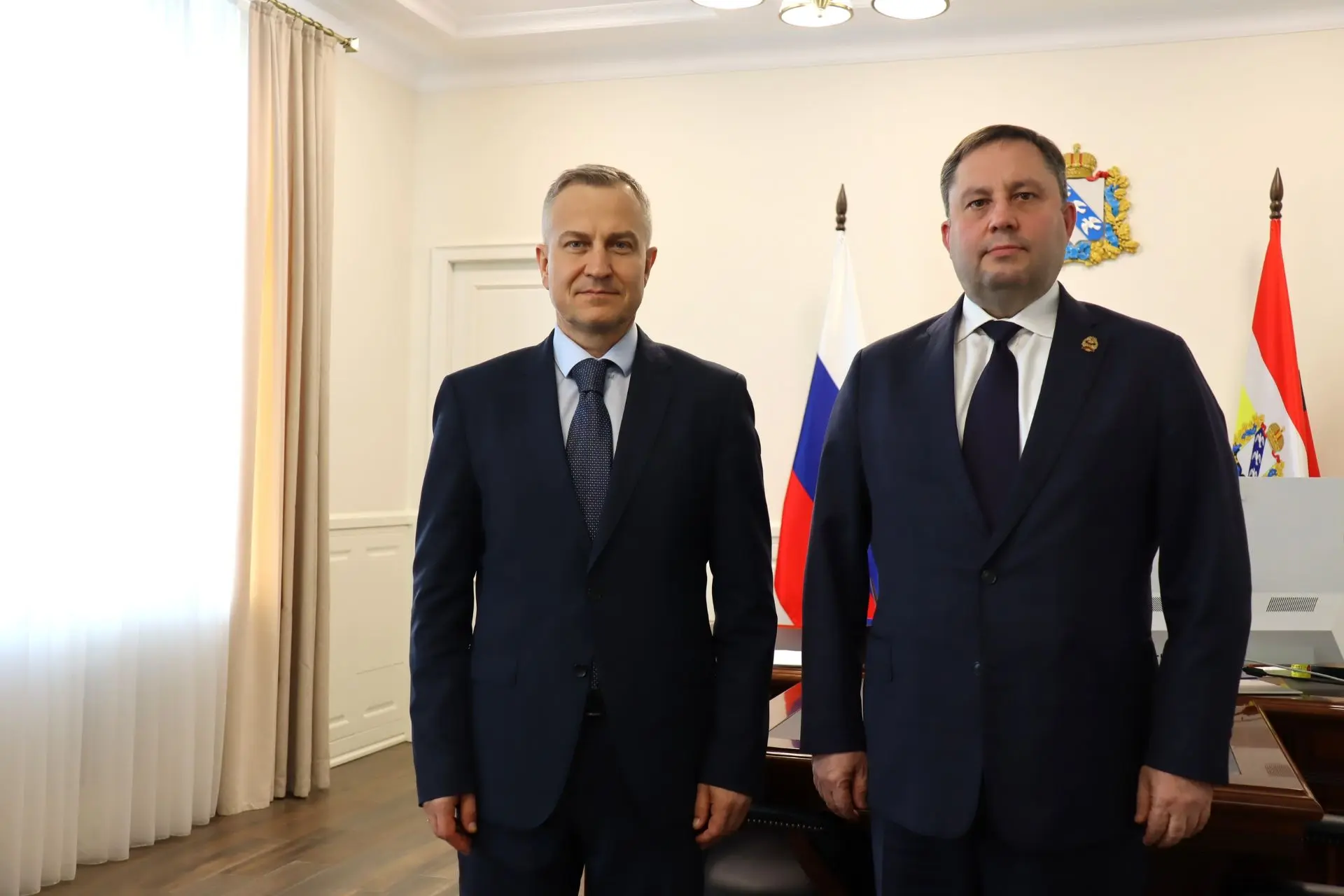 Заместитель главы ФАС России Тимофей Нижегородцев, который курирует работу по нашему региону, представил нового руководителя УФАС первому заместителю губернатора Курской области Александру Чепику. #губернатор46 #правительство46