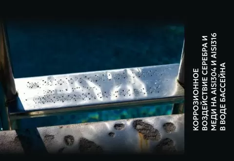 Многие опасаются, что ионы серебра и меди могут негативно влиять на коррозионные свойства нержавейки, однако такие мнения часто основаны на недостаточно полном понимании проблемы и единичных случаях. На самом деле, устойчивость нержавеющих сталей в условиях бассейна определяется множеством различных факторов.