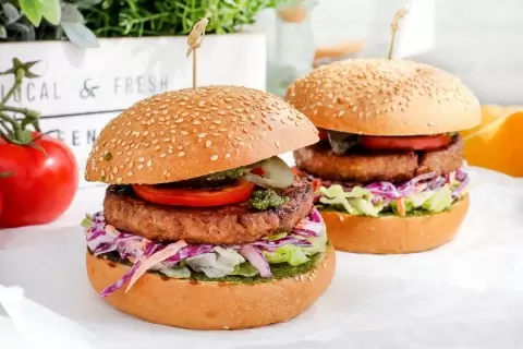Бургер "Дочь лесника" - это не просто еда, а настоящее гастрономическое путешествие. В этом блюде сочетаются котлета из растительного мяса, свежие сезонные овощи, солёные огурцы и уникальный миндальный песто. Интересно, что в разных странах можно встретить свои версии песто. Например, во Франции готовят соус писту, который не содержит орехов. В Германии вместо базилика используют черемшу, а австрийцы отдают предпочтение песто из тыквенных семечек. В Италии песто - неотъемлемая часть праздничного стола, символизирующая изобилие и вкус.