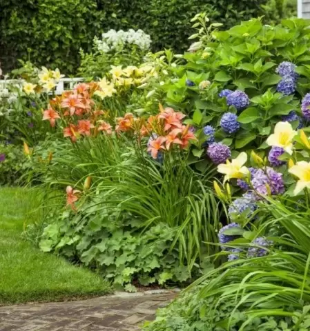 Среди множества сортов лилейников с различной окраской и размером, легко найти идеальных соседей для создания красивой клумбы. В многоярусных композициях лилейники прекрасно сочетаются как с декоративно-лиственными, так и с яркими цветущими растениями:
