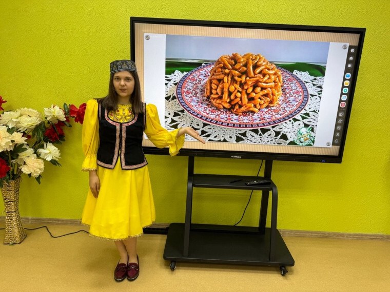 с народными костюмами — показывали детали вышивки, орнаменты, украшения и объясняли их значение;