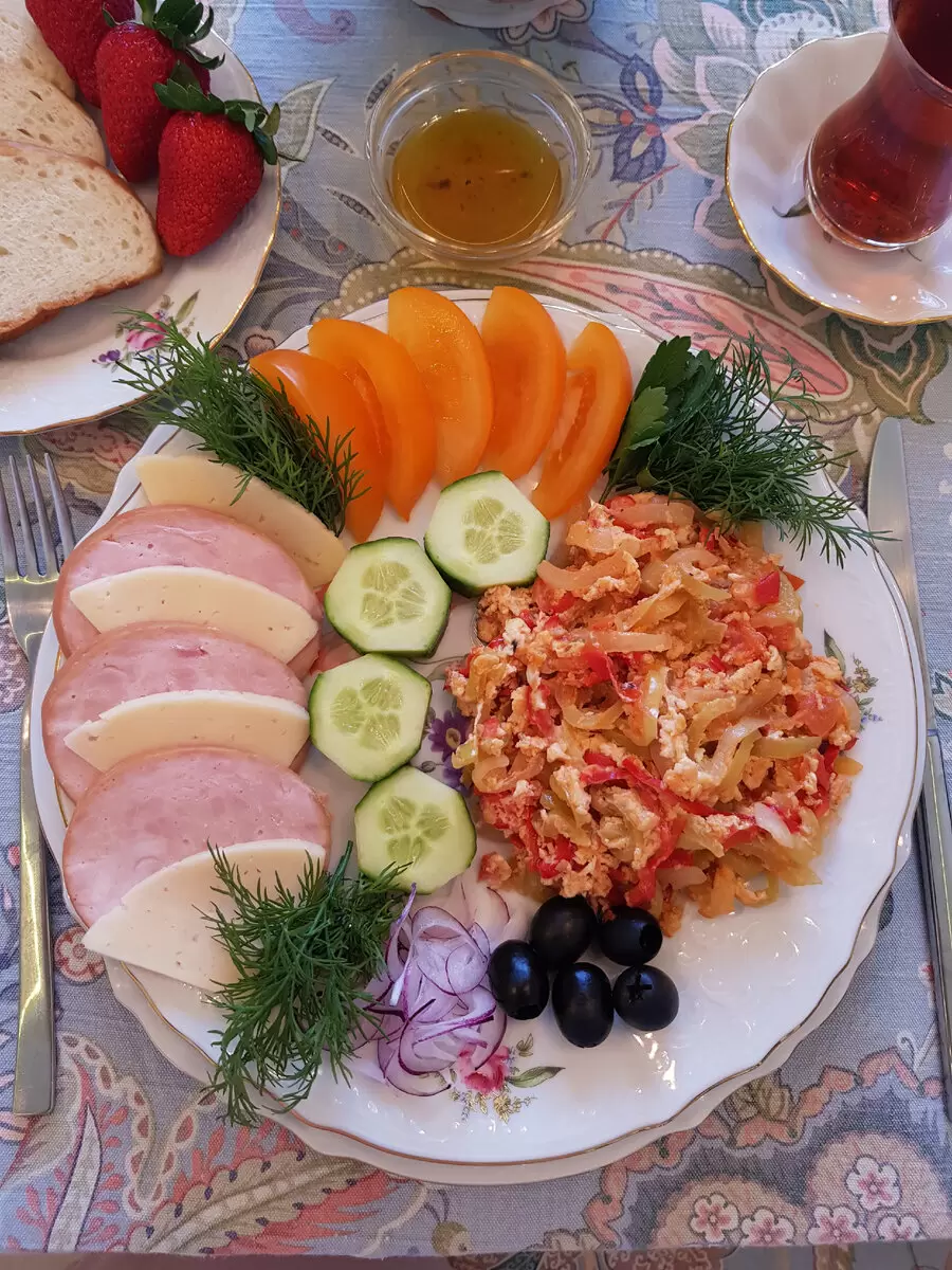 Этот завтрак дополнит турецкий чай и немного клубники, что создаст атмосферу настоящей восточной трапезы. Удачного аппетита и вдохновения на новые кулинарные эксперименты!