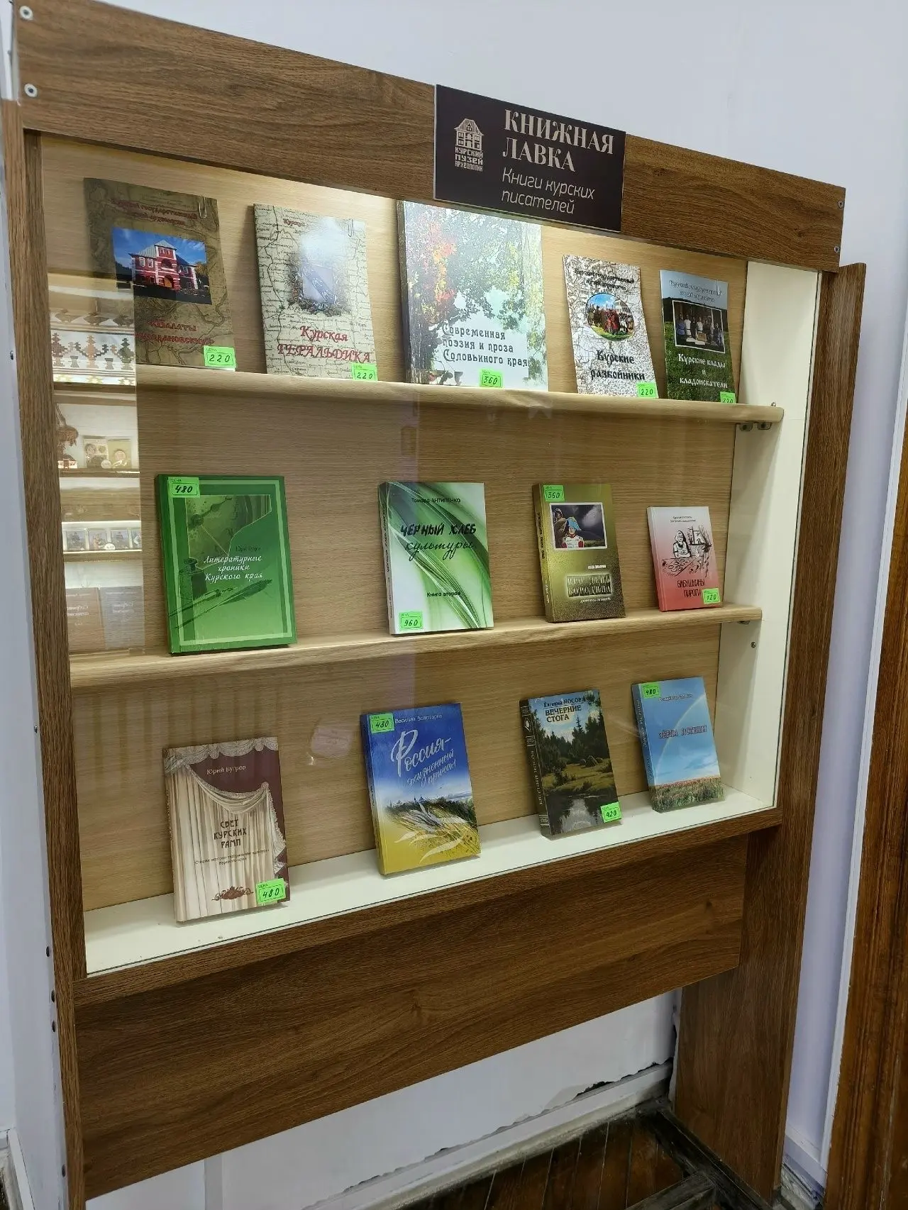 Посетители музея теперь могут приобрести издания, посвященные истории и культуре региона. Основу ассортимента составляют труды курских краеведов, классические произведения авторов-земляков, а также новинки современной региональной прозы и поэзии.
