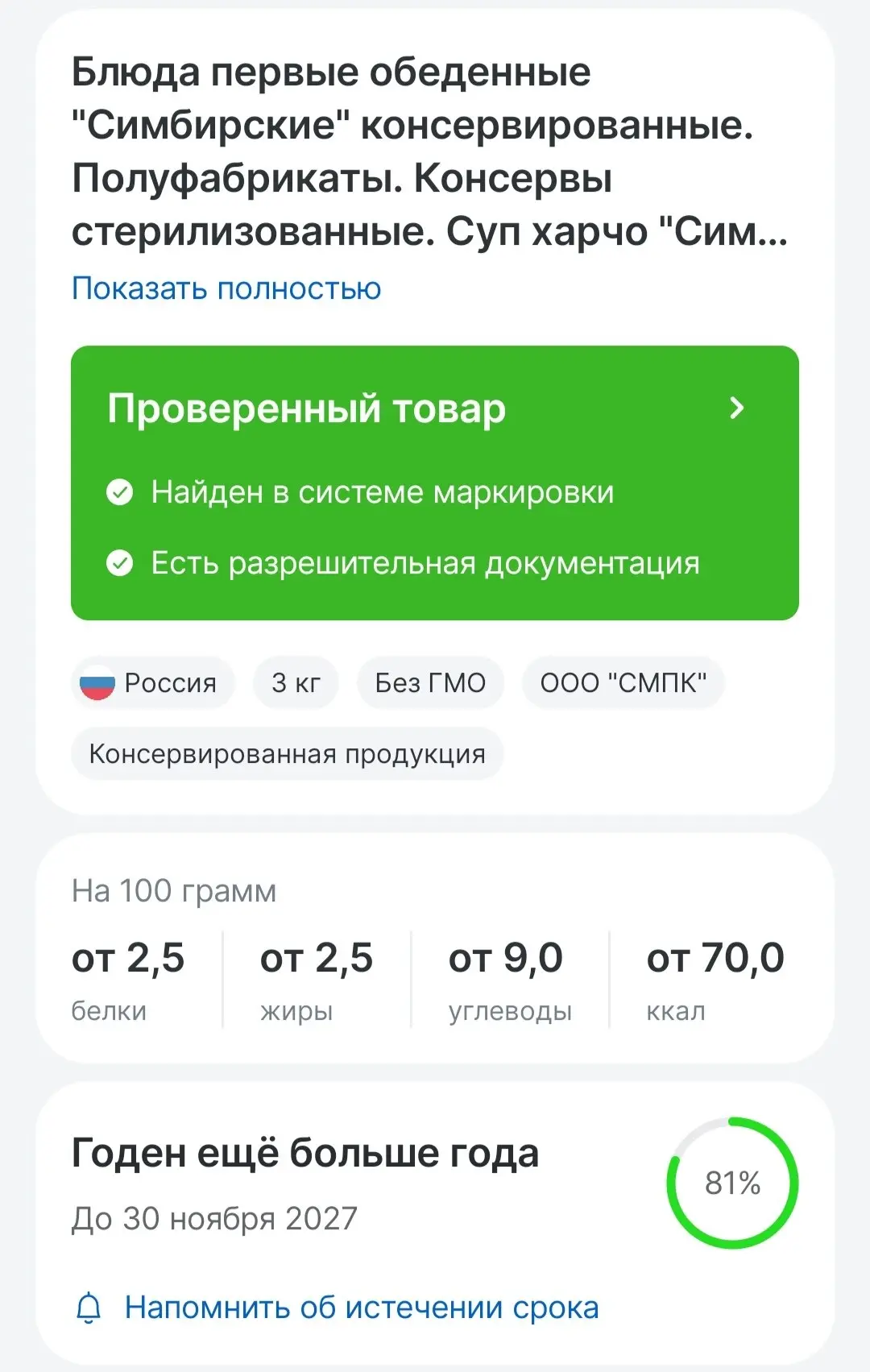 - Согласно маркировке, срок годности продукции истекает лишь через год, что подтверждено проверкой в системе национальной системы маркировки «Честный знак», - добавил Фурцев.