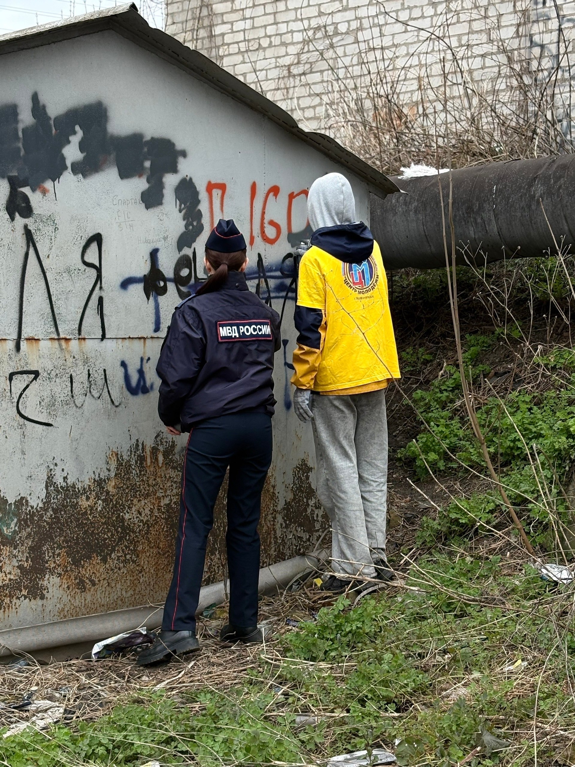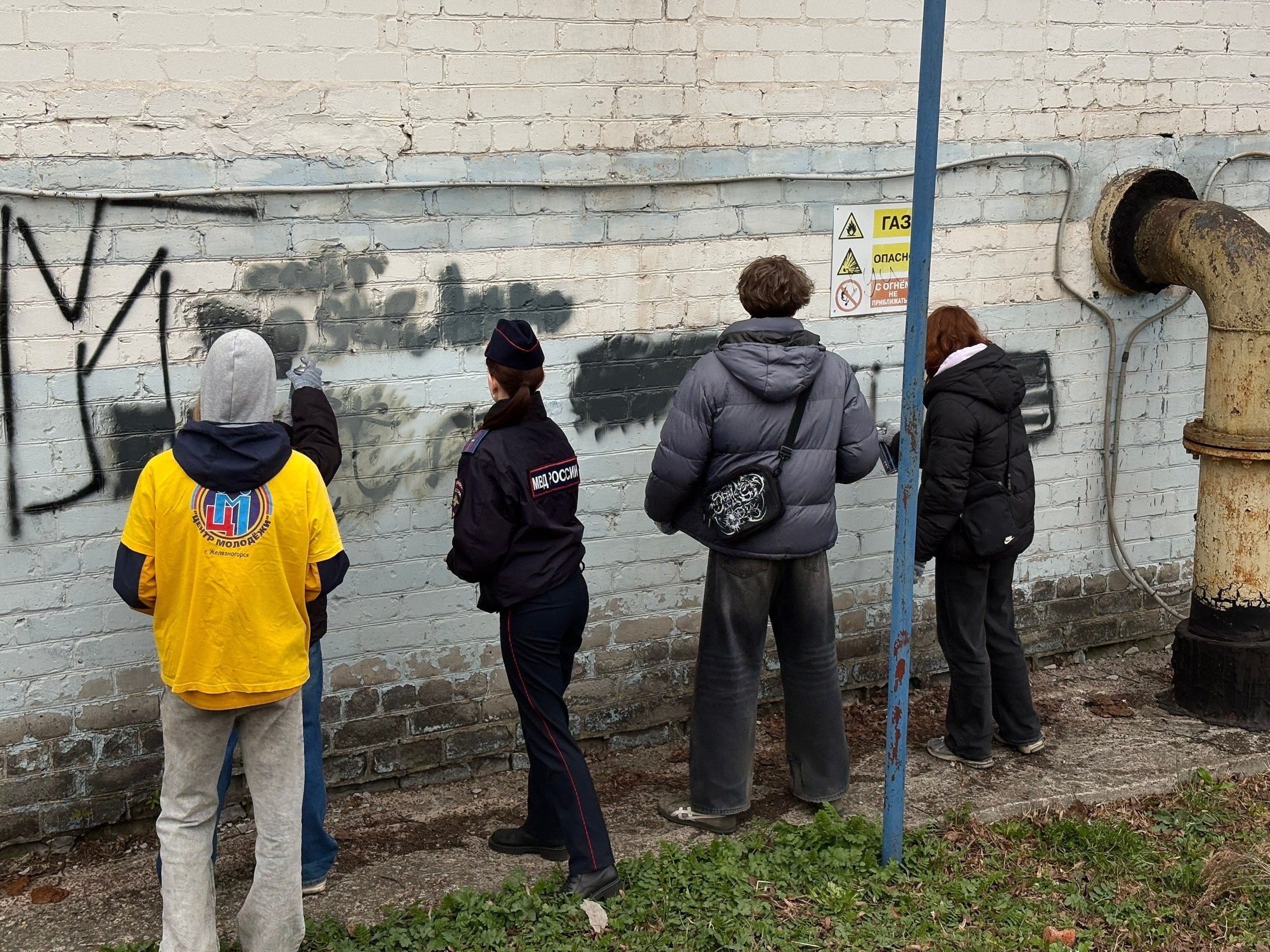 Волонтёры Центра молодёжи вместе с сотрудниками полиции провели акцию «Чистые стены».