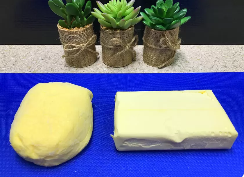 В ходе эксперимента обе пробы масла подверглись различным тестам. Один из простейших — заморозка. Оба сорта масла вполне легко резались, что также вызывает сомнения в их натуральности, ведь качественное масло должно крошиться.