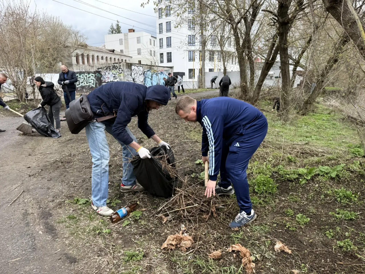 Общими усилиями привели в порядок территорию около переходного моста с улицы Сонина на улицу Стрелецкая набережная: собрали бытовой мусор и прошлогоднюю листву. Справились за пару часов — в хорошей компании любое дело идёт быстро.
