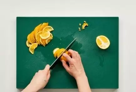 1. Лимоны нарезать тонкими полукольцами, включая кожуру, и удалить семена.