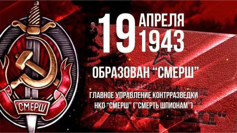 19 апреля 1943 года было образовано Главное управление контрразведки "Смерш" — "Смерть шпионам".