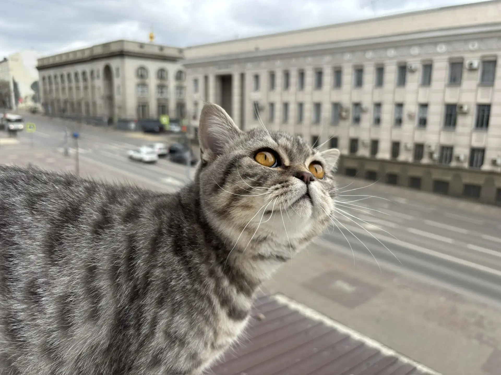 Бус наблюдает за «Волгабасами» и улицей Ленина в Курске. Делитесь своими питомцами в комментариях. Фото: Игорь Теплицкий. #Курск