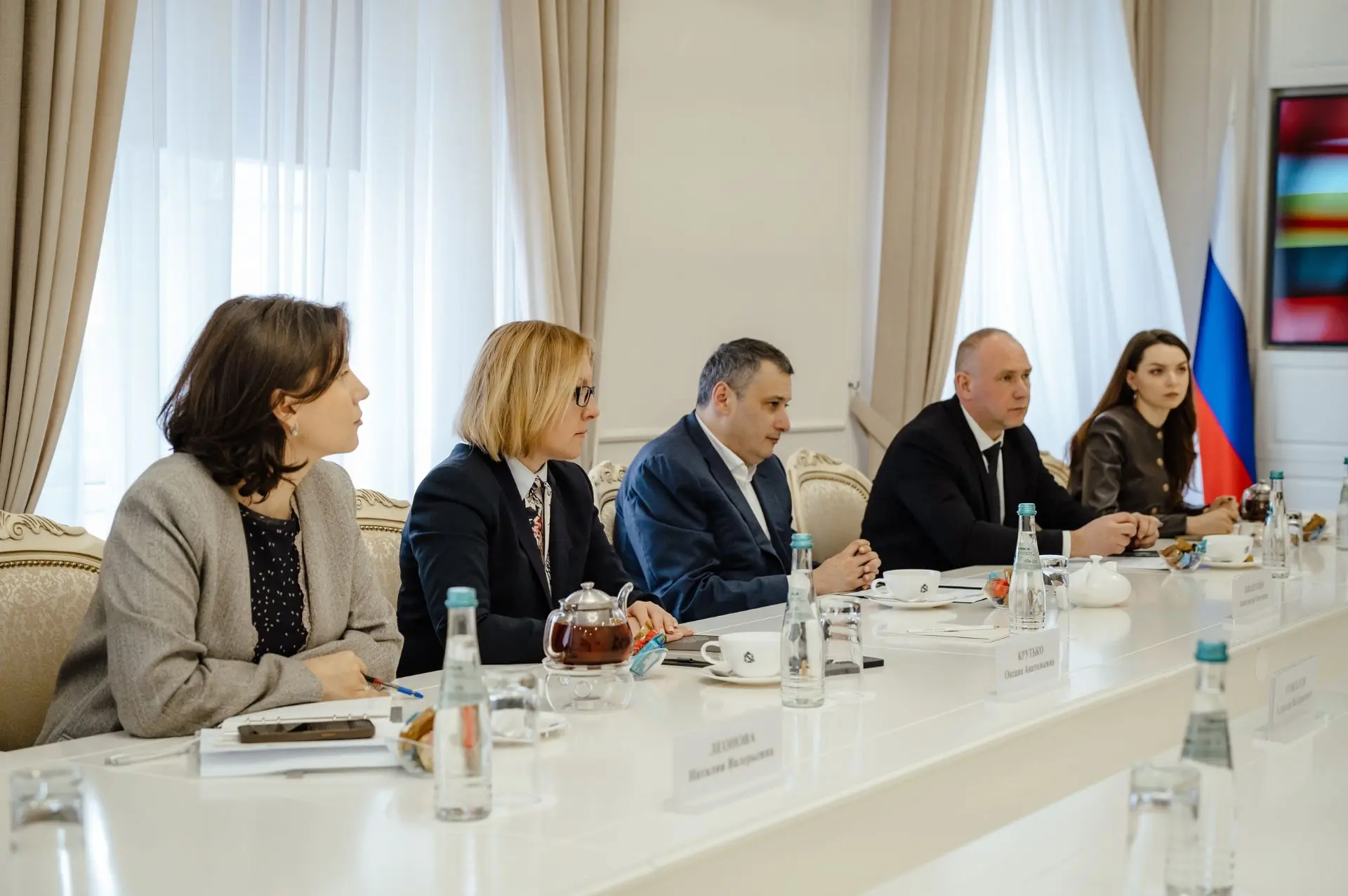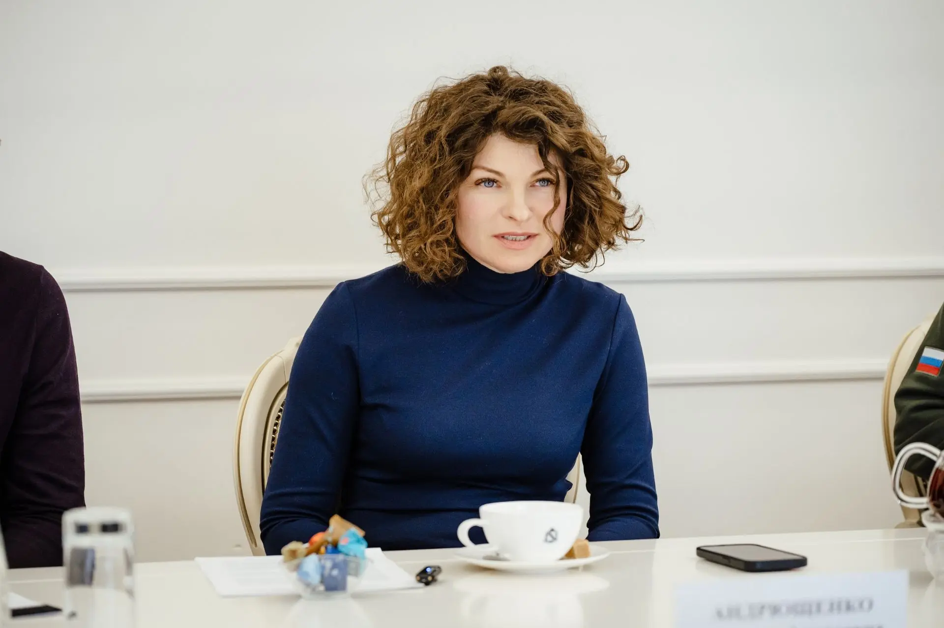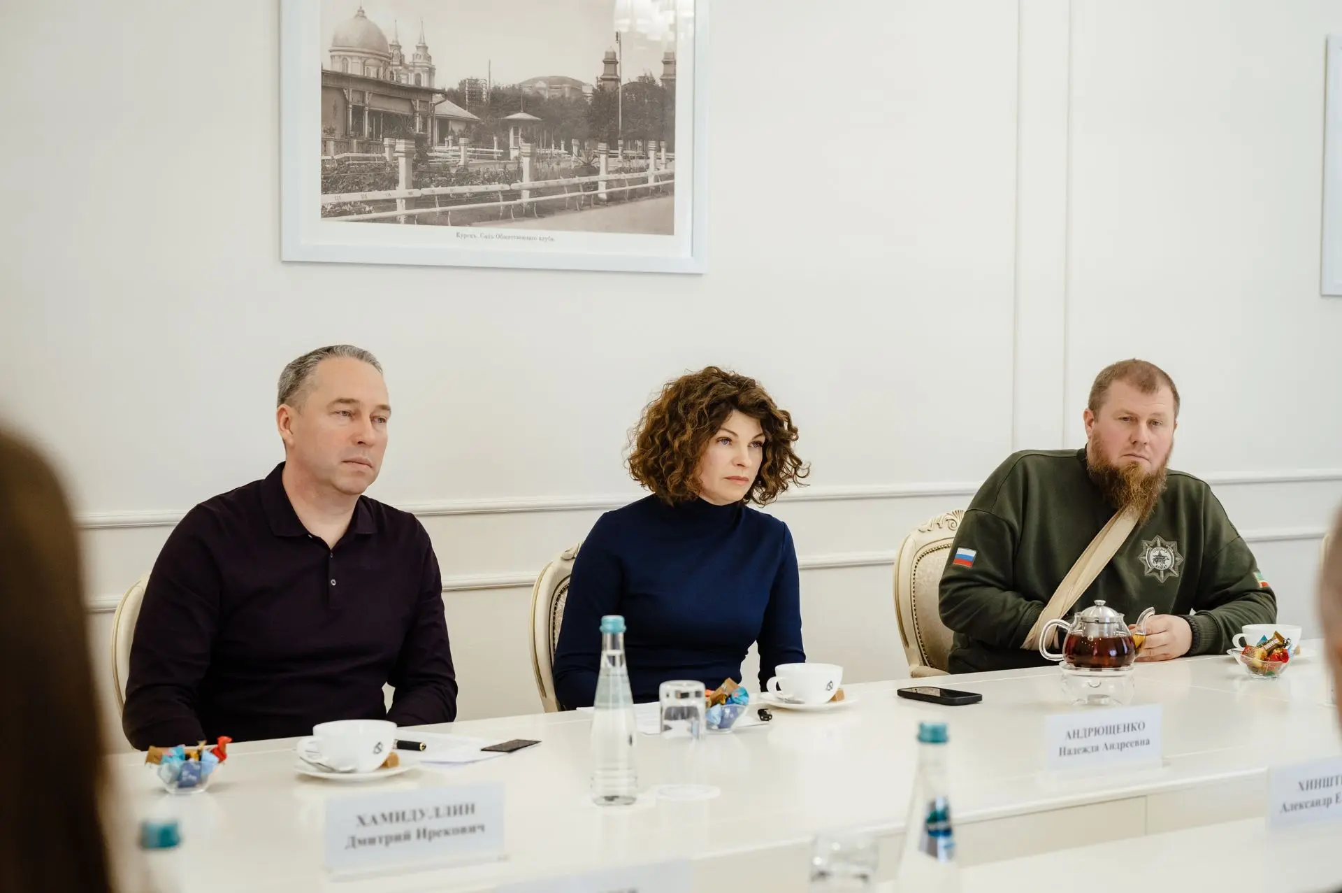 Губернатор Курской области Александр Хинштейн провел встречу с генеральным директором кинокомпании «Ленфильм» Надеждой Андрющенко, которая приехала в Курск вместе с командой
